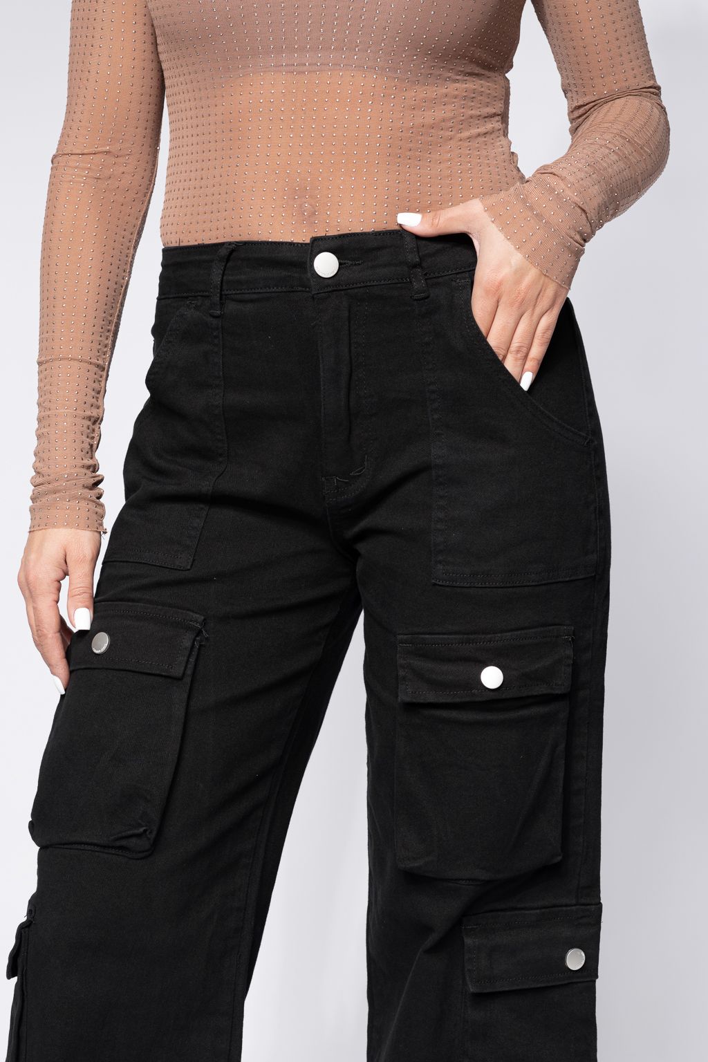 Дамски карго дънки Miki Черни #A643