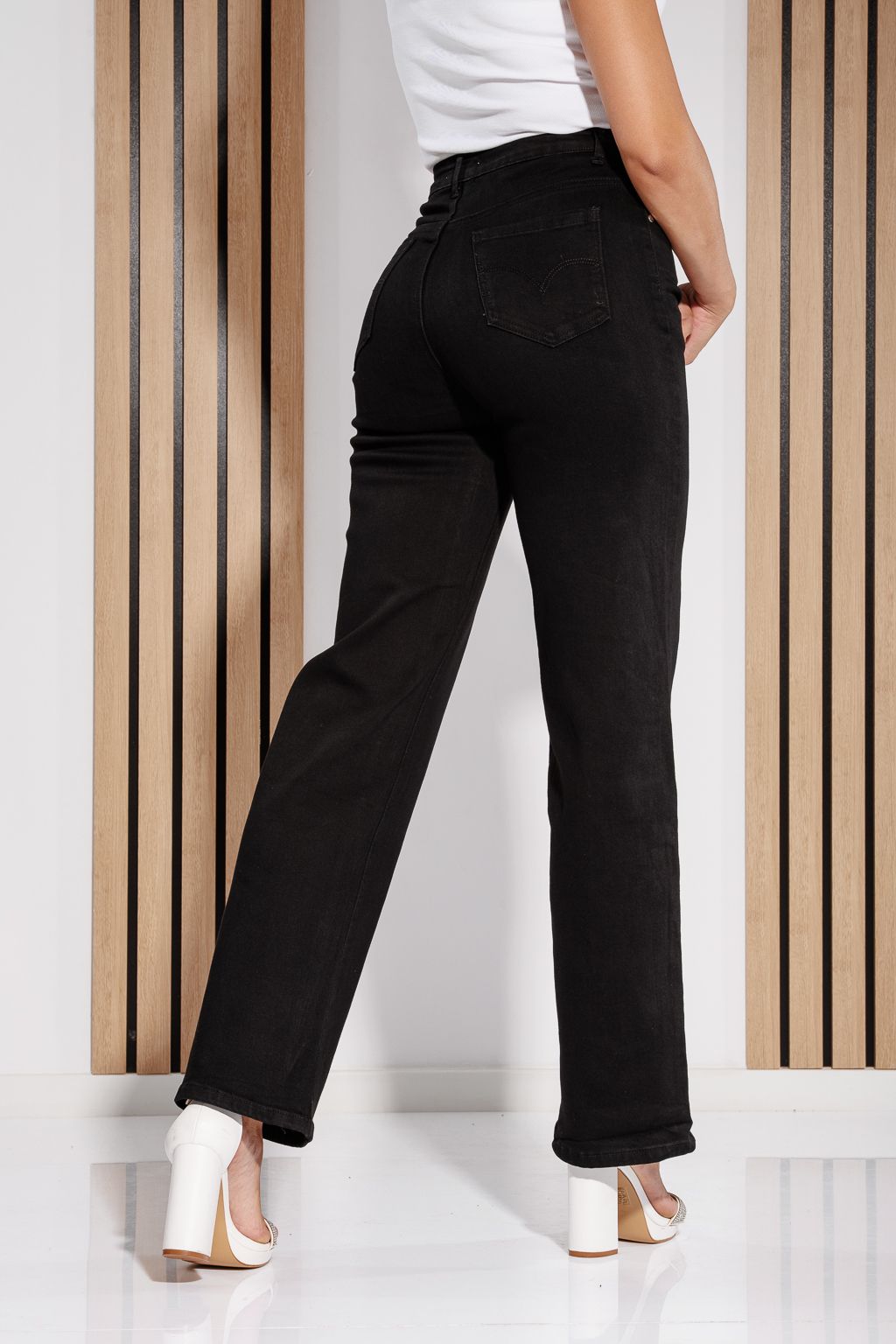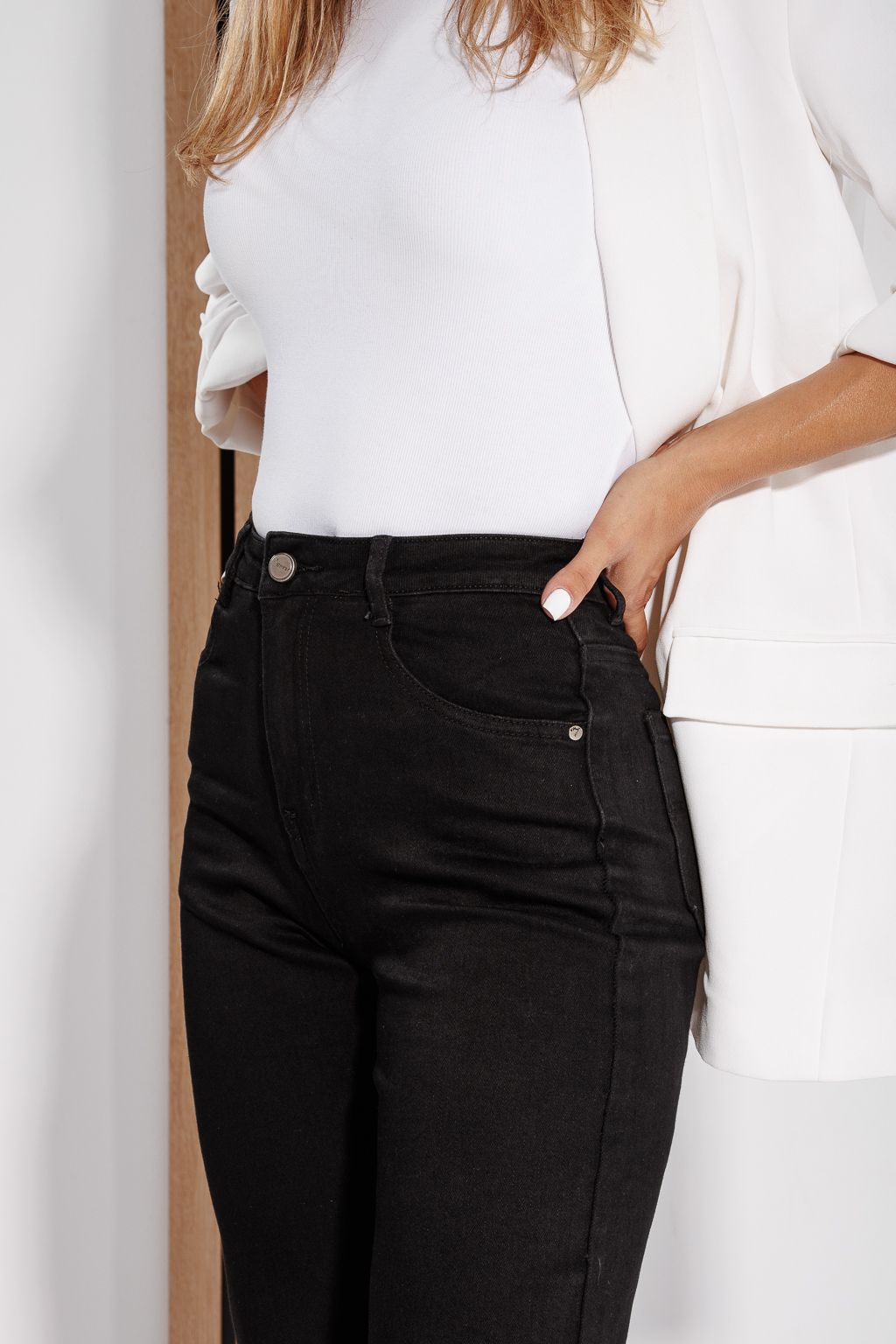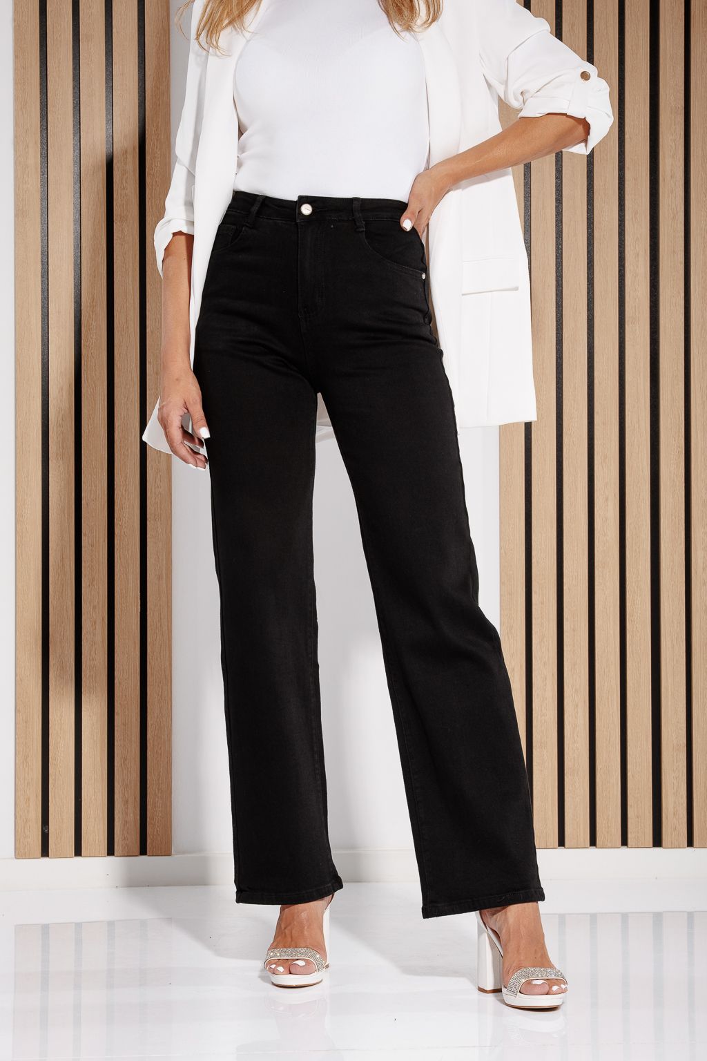 Начало Всички продукти Дамски дрехи Дамски Дънки Дамски дънки Aria с широки крачоли, черни #A1191