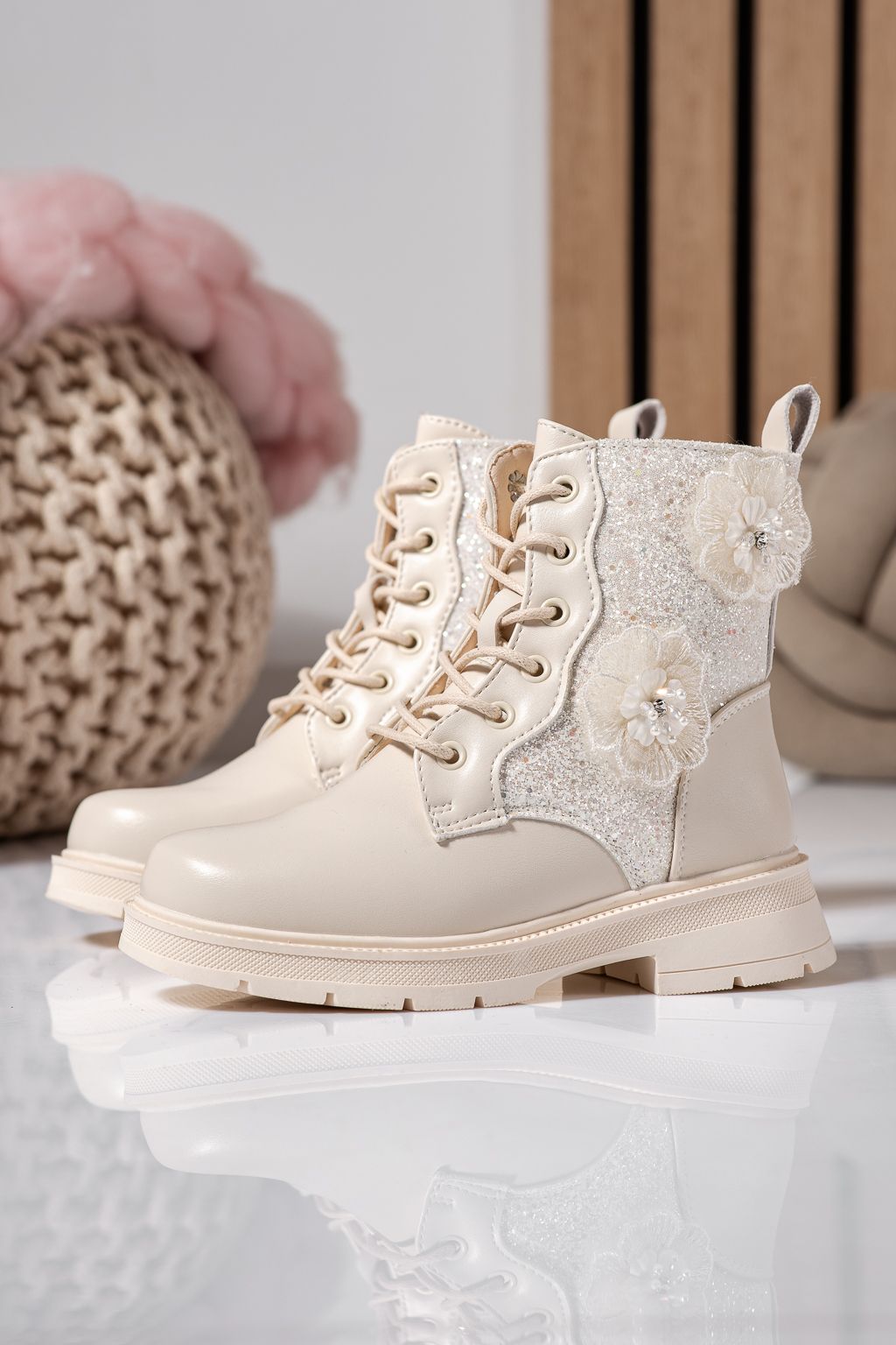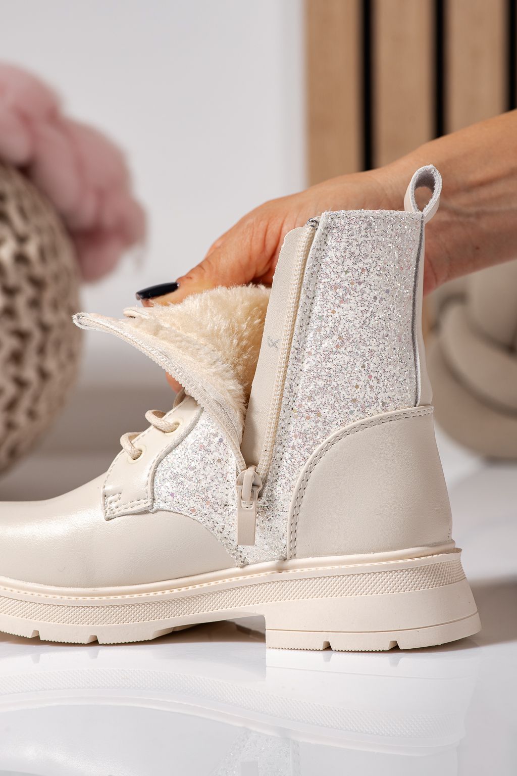 Начало Всички продукти Детски обувки Детски Боти Дамски боти подплатени бежови от еко кожа Marina #22550