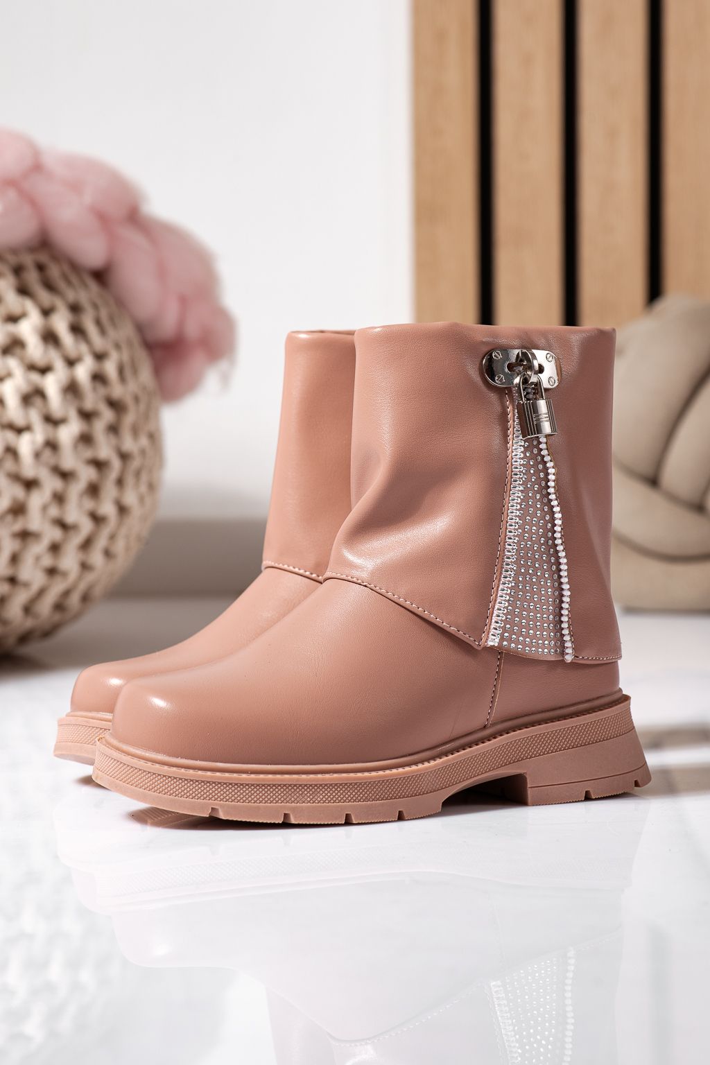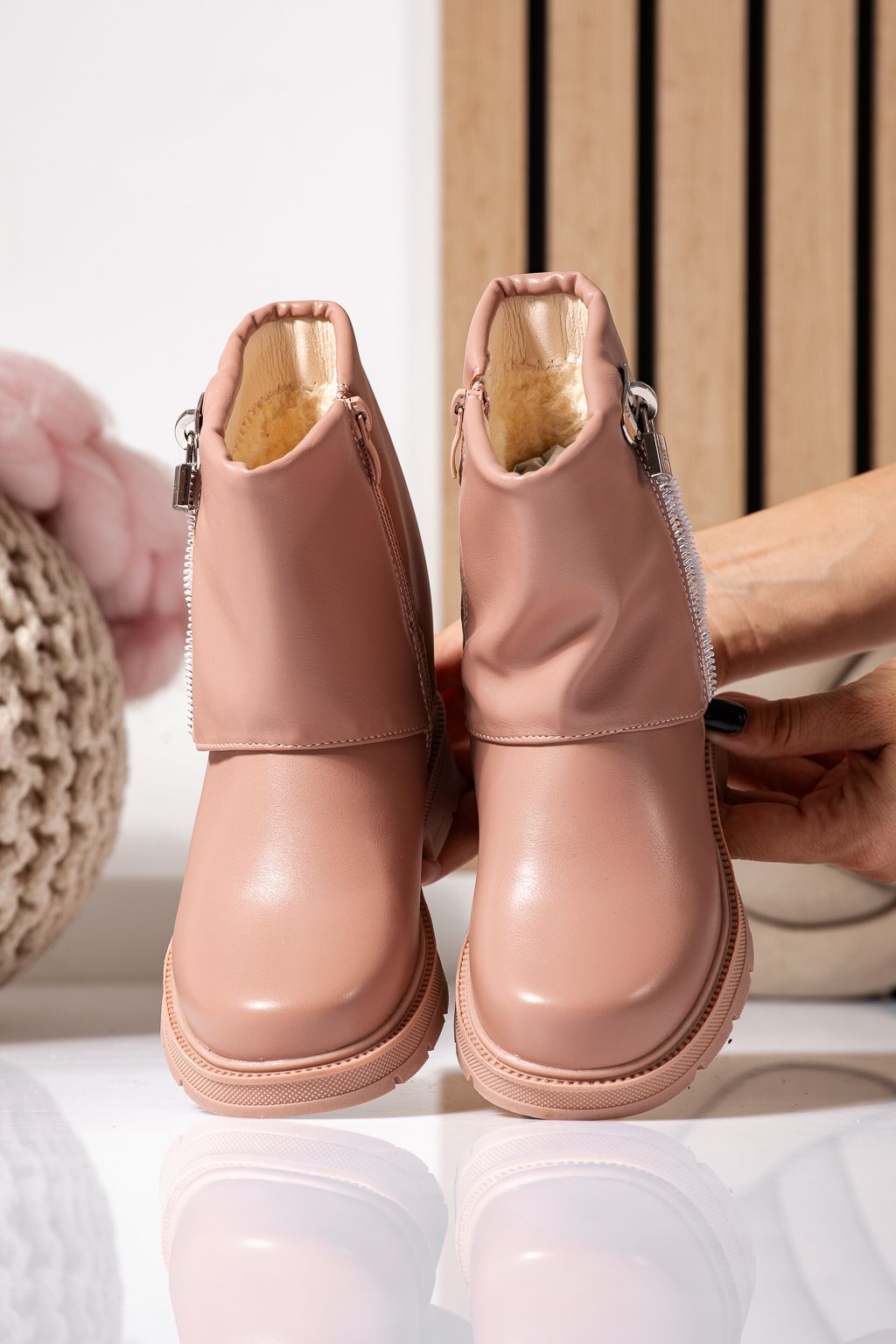 Дамски боти подплатени розови от еко кожа Sara #22552