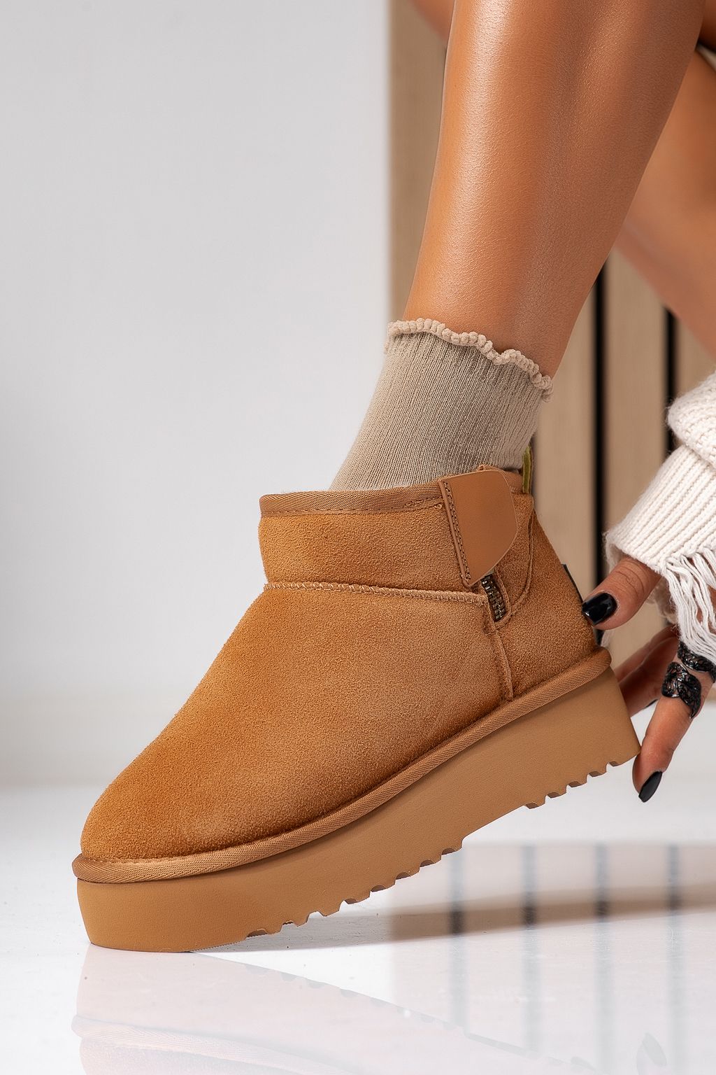 Къси дамски чизми одплатени с пух, тип UGG кафяви от обърната естествена кожа Carolina #22632