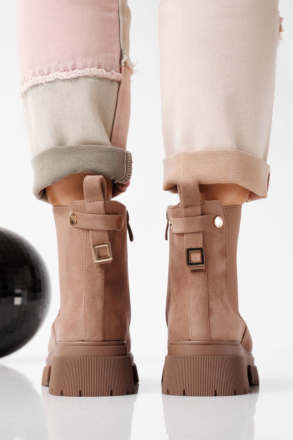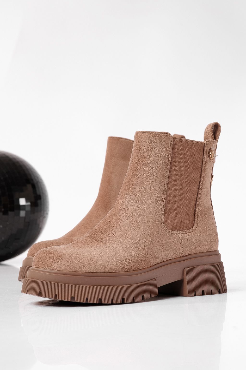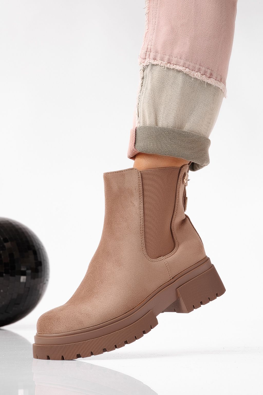 Дамски боти подплатени с пух каки от обърната еко кожа Antonia #22639
