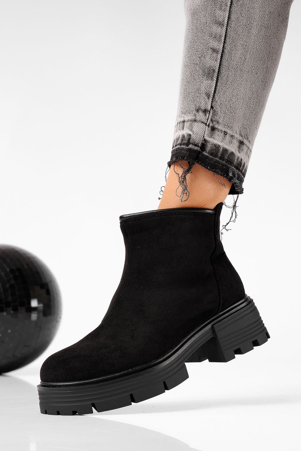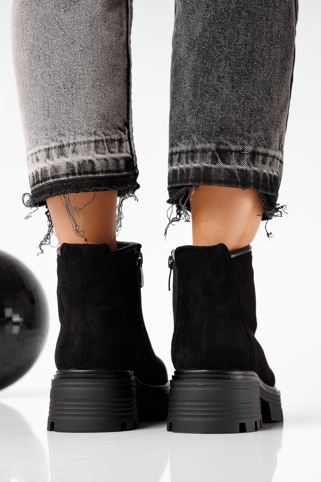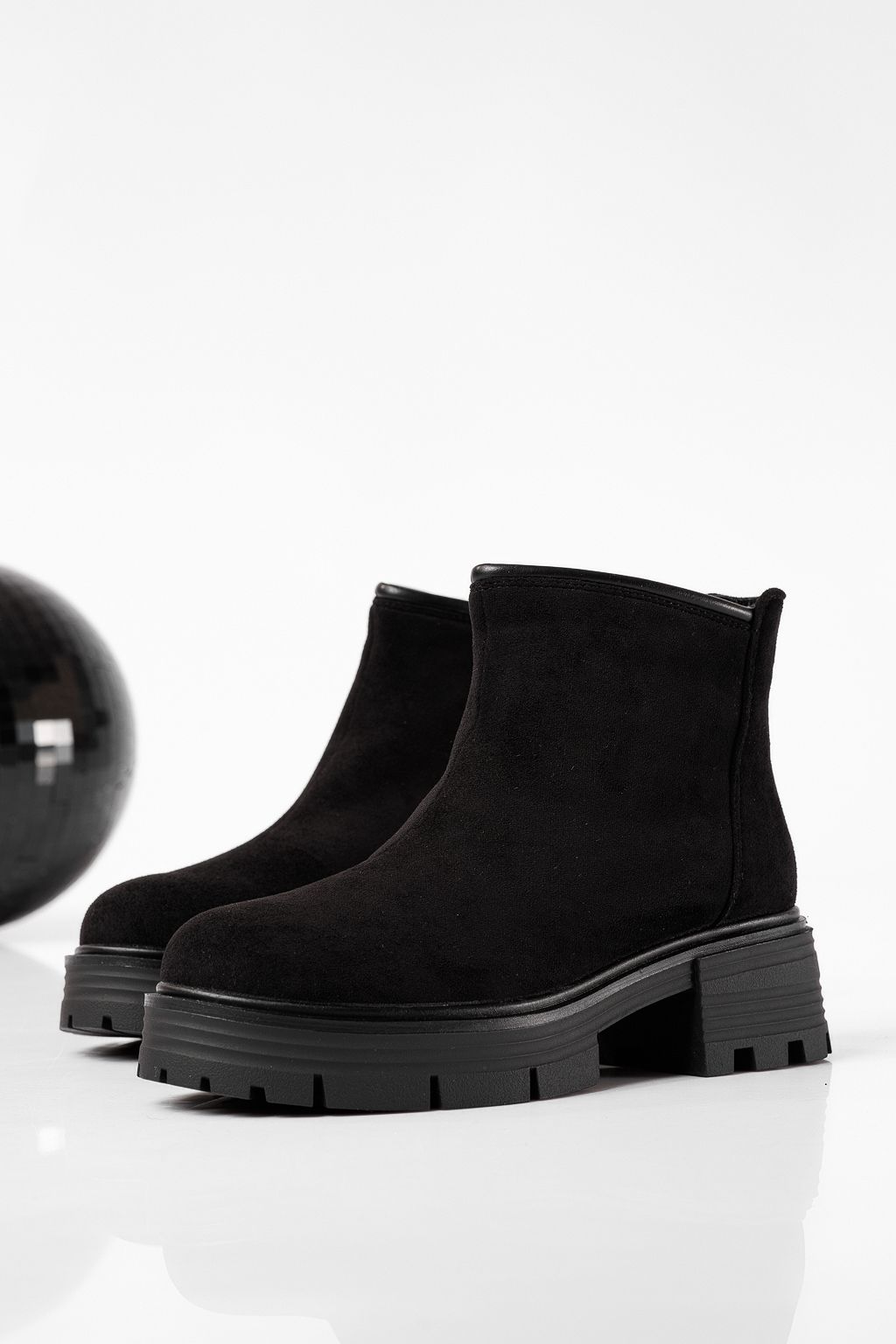 Дамски боти подплатени с пух черни от обърната еко кожа Adelina #22641