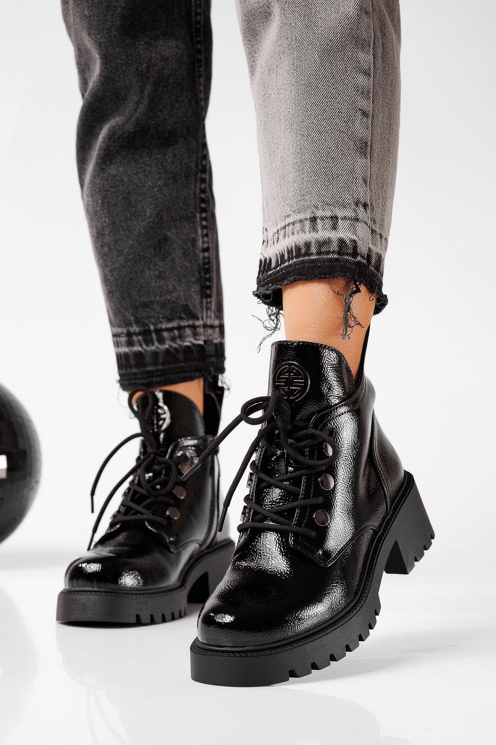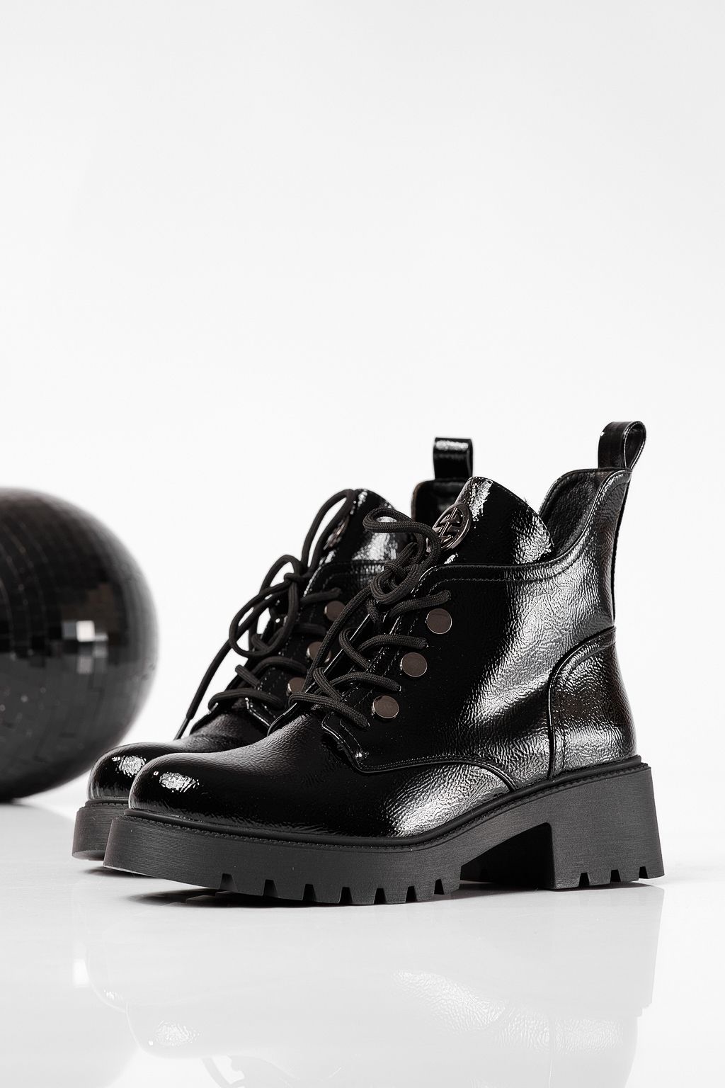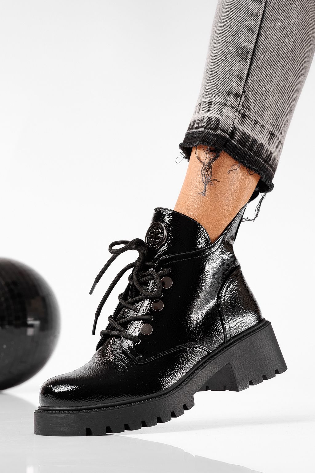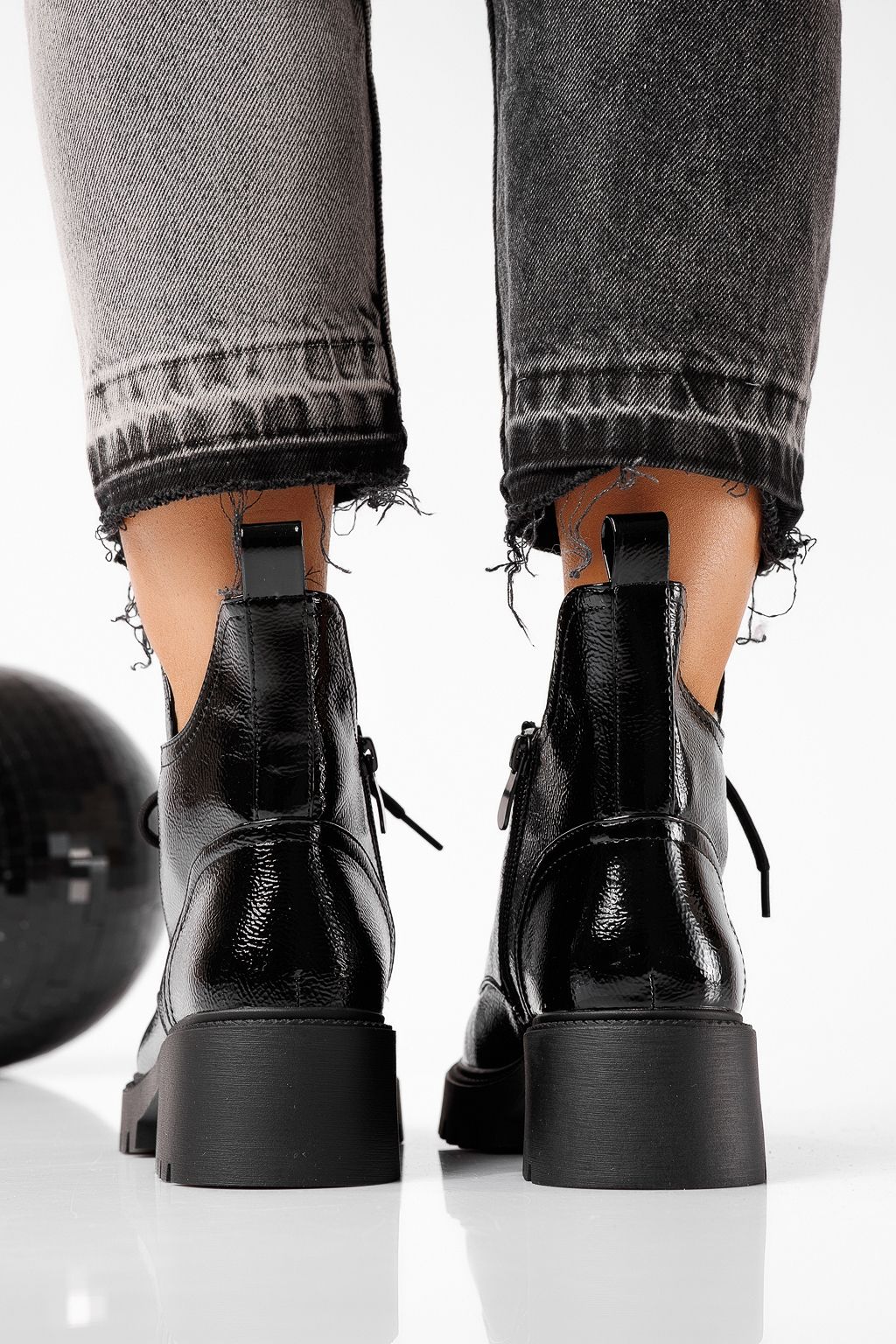 Дамски боти ватирани черни от лачена еко кожа Chiara #22649