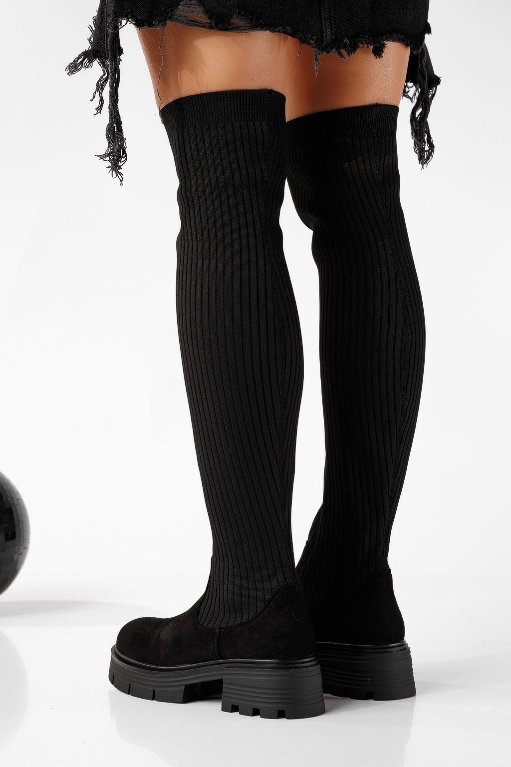 Дълги дамски чизми подплатени с пух черни от обърната еко кожа Iris #22656