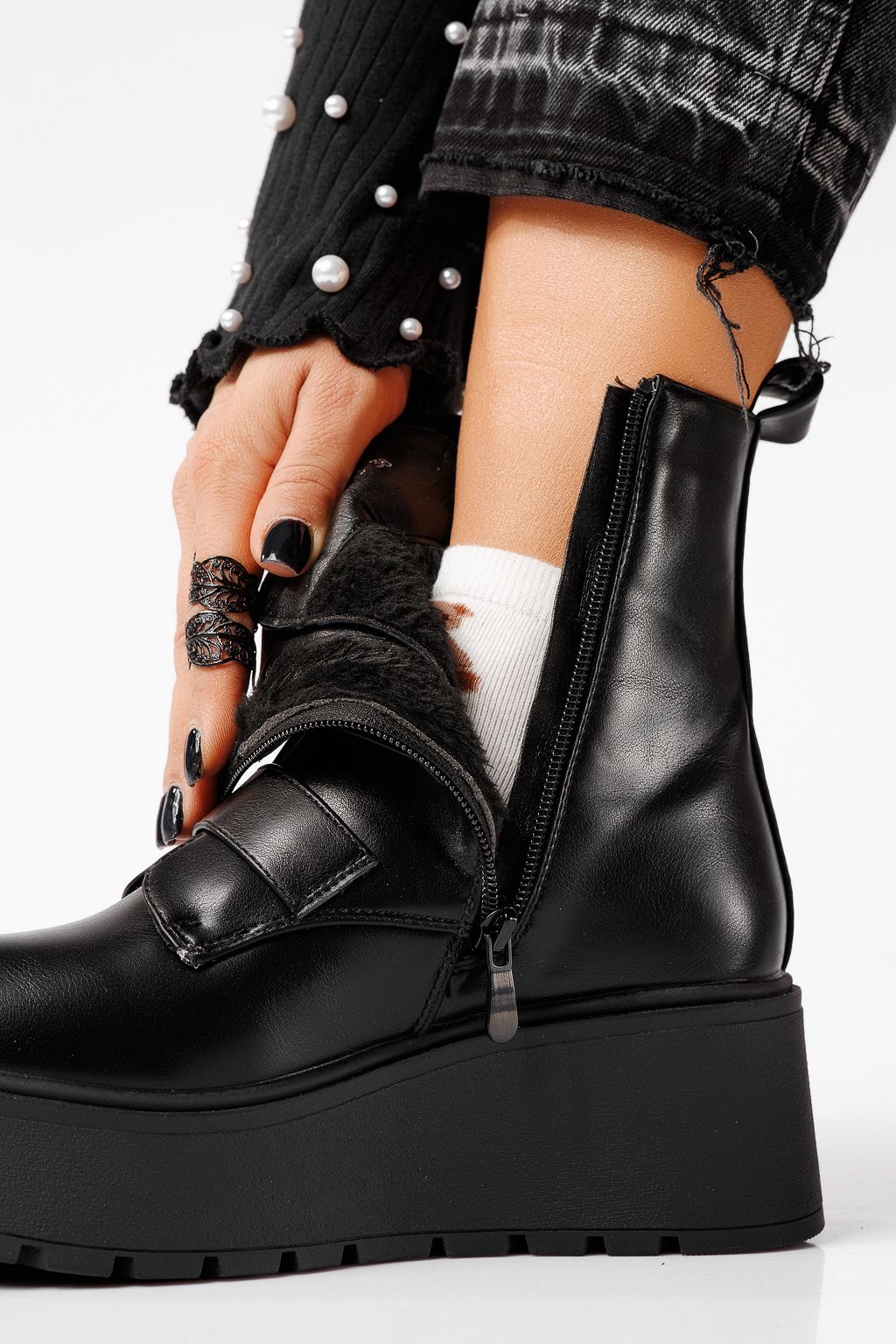 Дамски боти подплатени с пух черни от еко кожа Lumi #22666