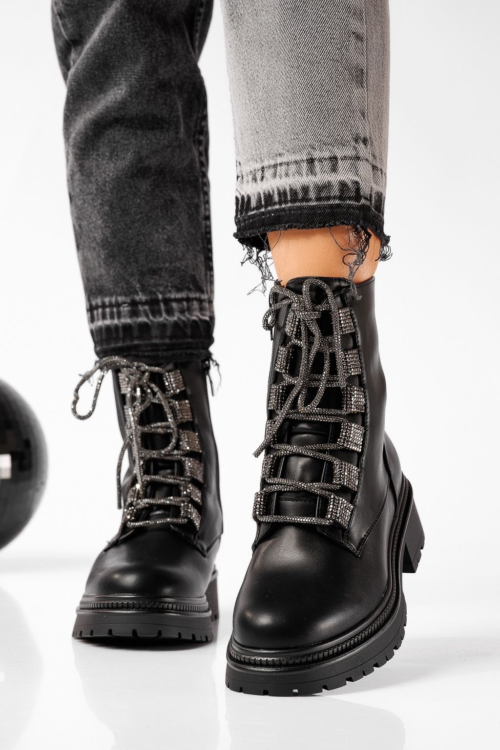 Начало Всички продукти ботуши за жени Зимни боти Дамски боти подплатени с пух черни от еко кожа Liana #22668