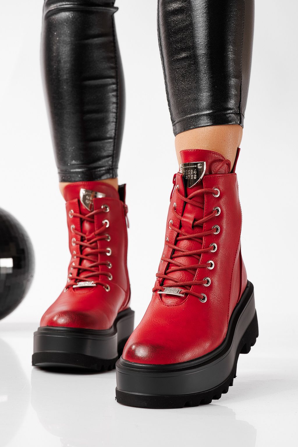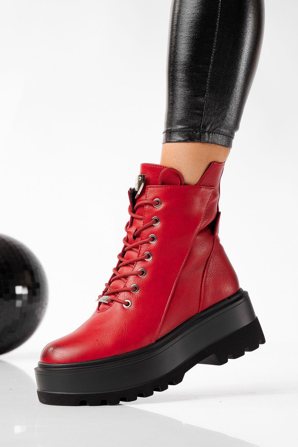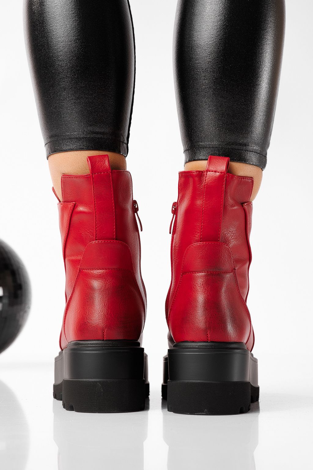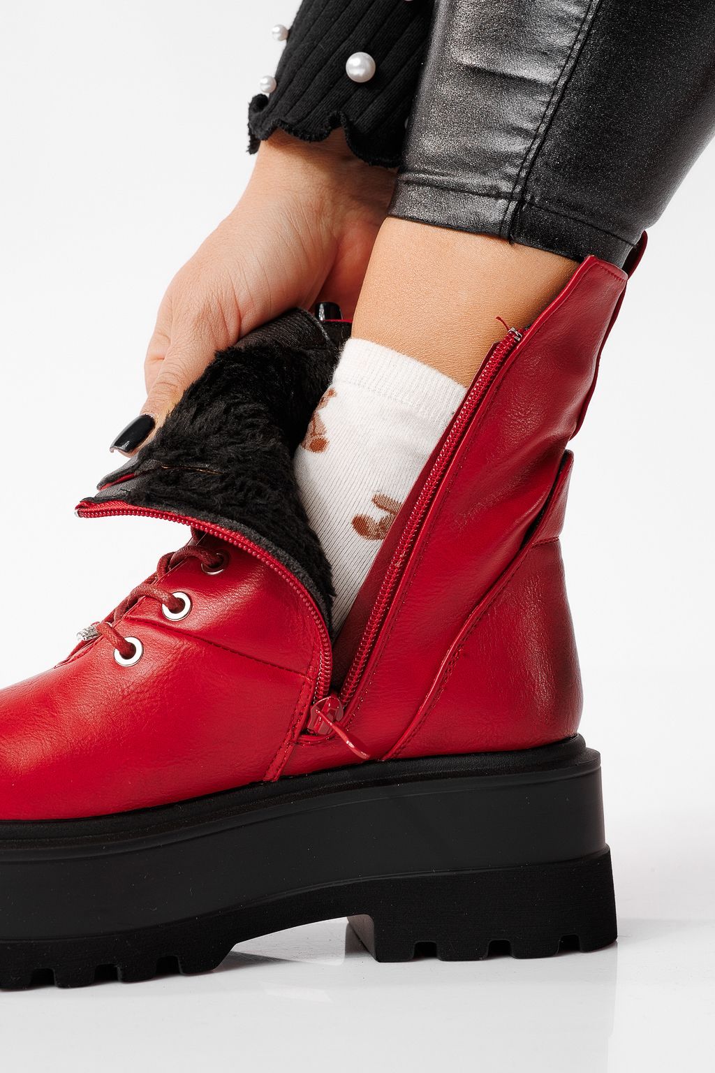 Дамски боти подплатени с пух червени от еко кожа Maria #22674