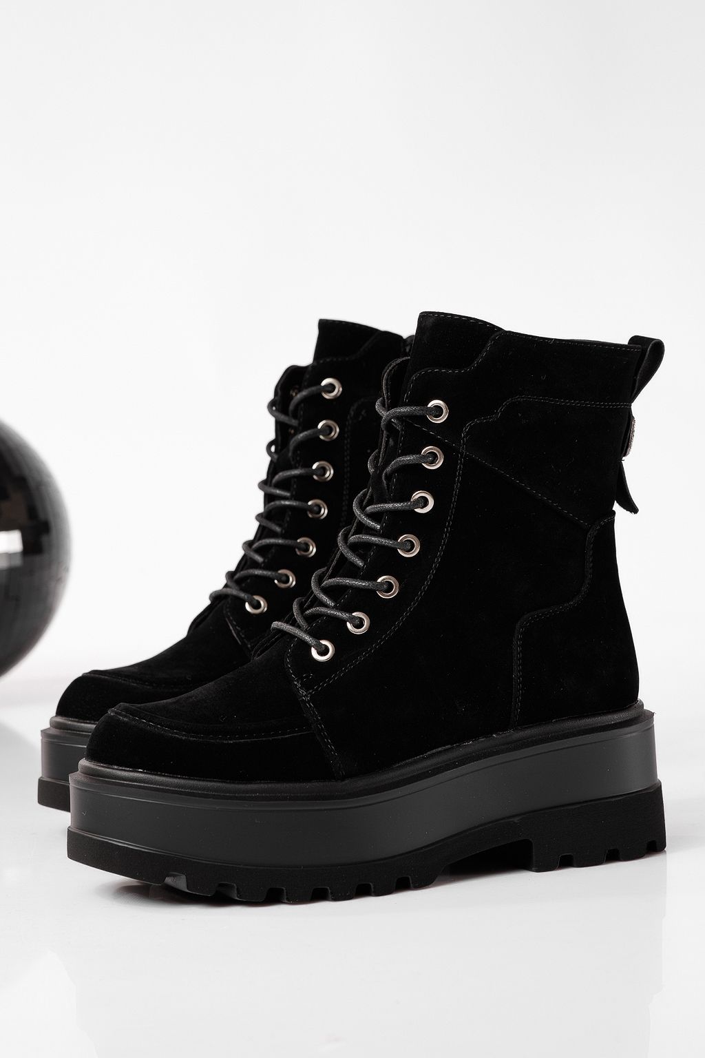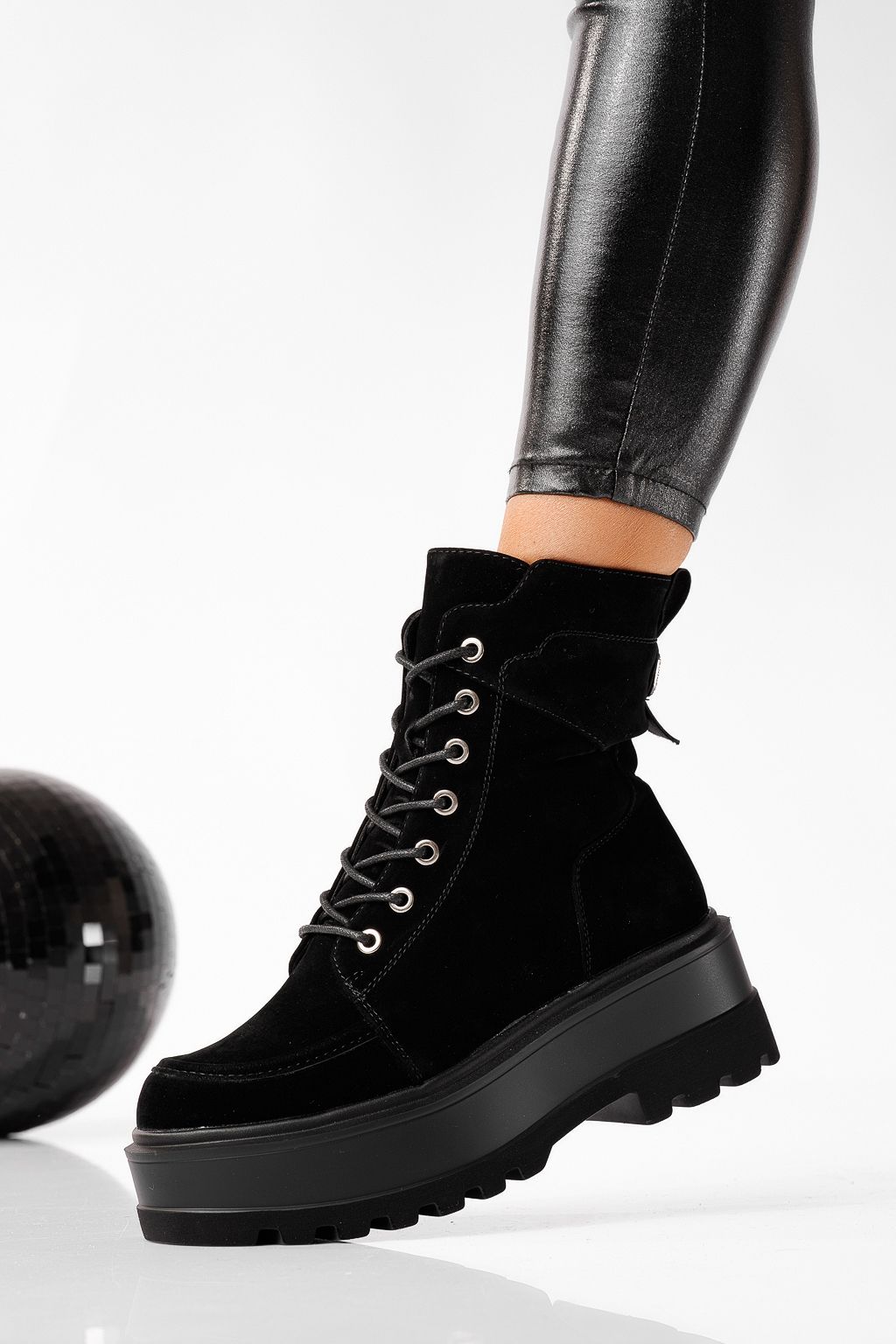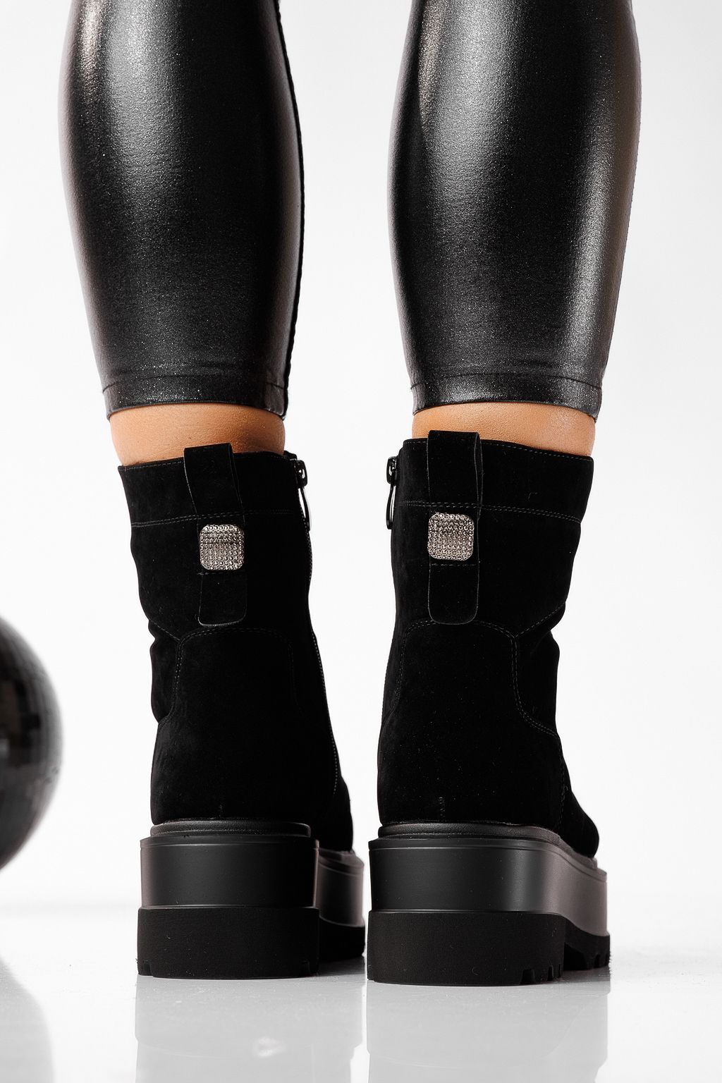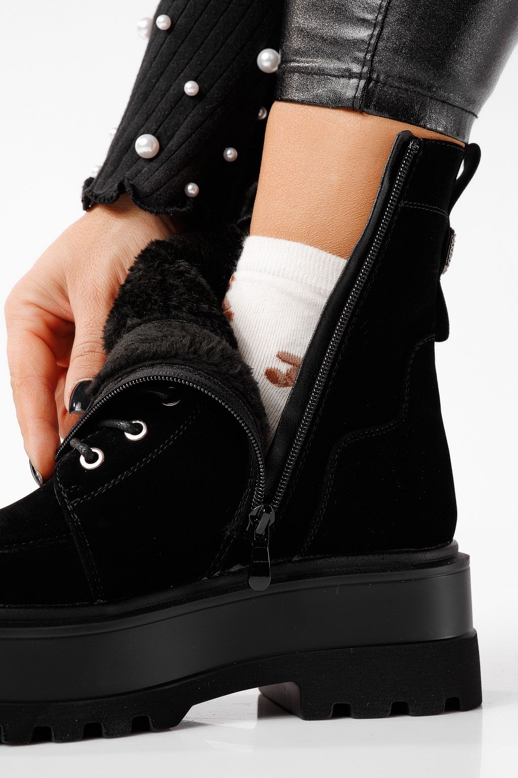 Дамски боти подплатени с пух черни от еко кожа Ioana #22680