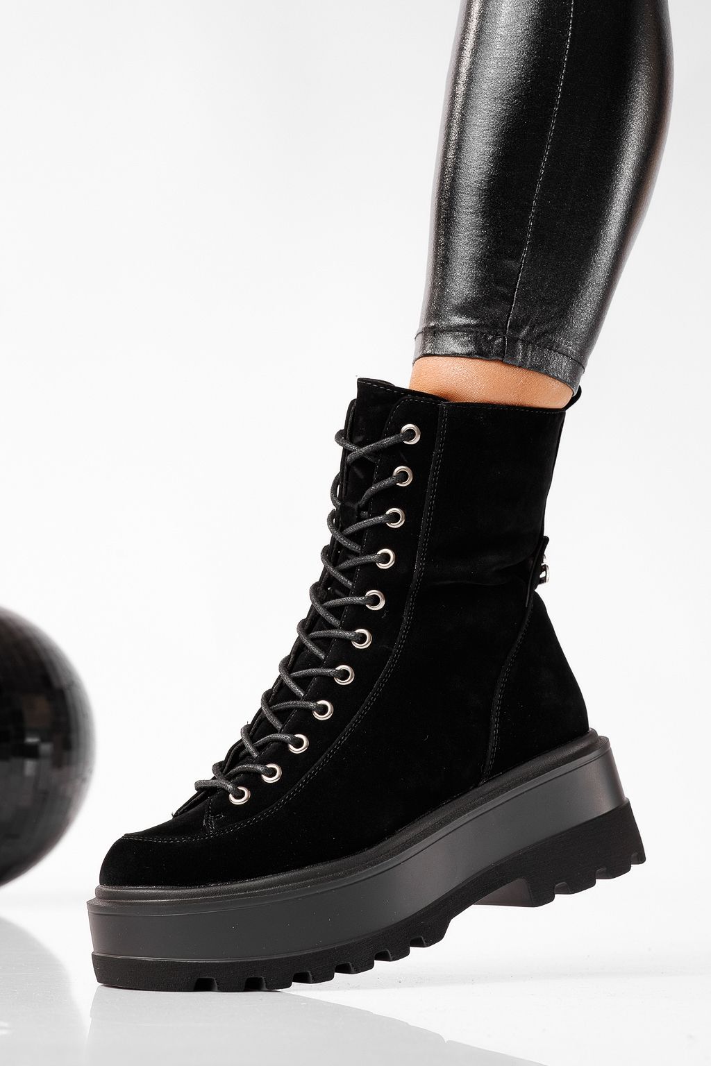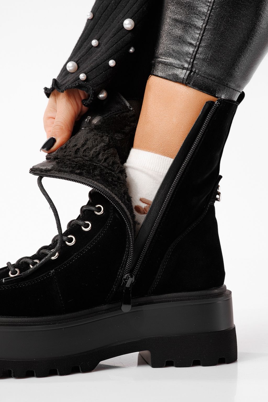 Дамски боти подплатени с пух черни от еко кожа Alessia #22684