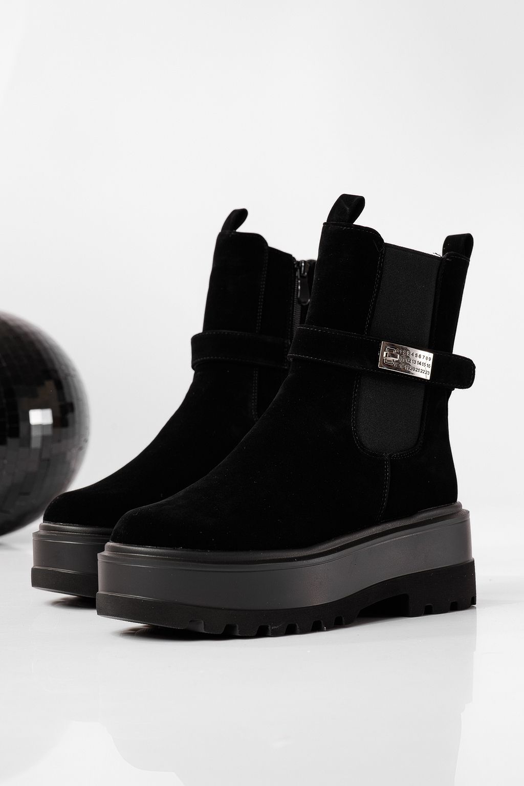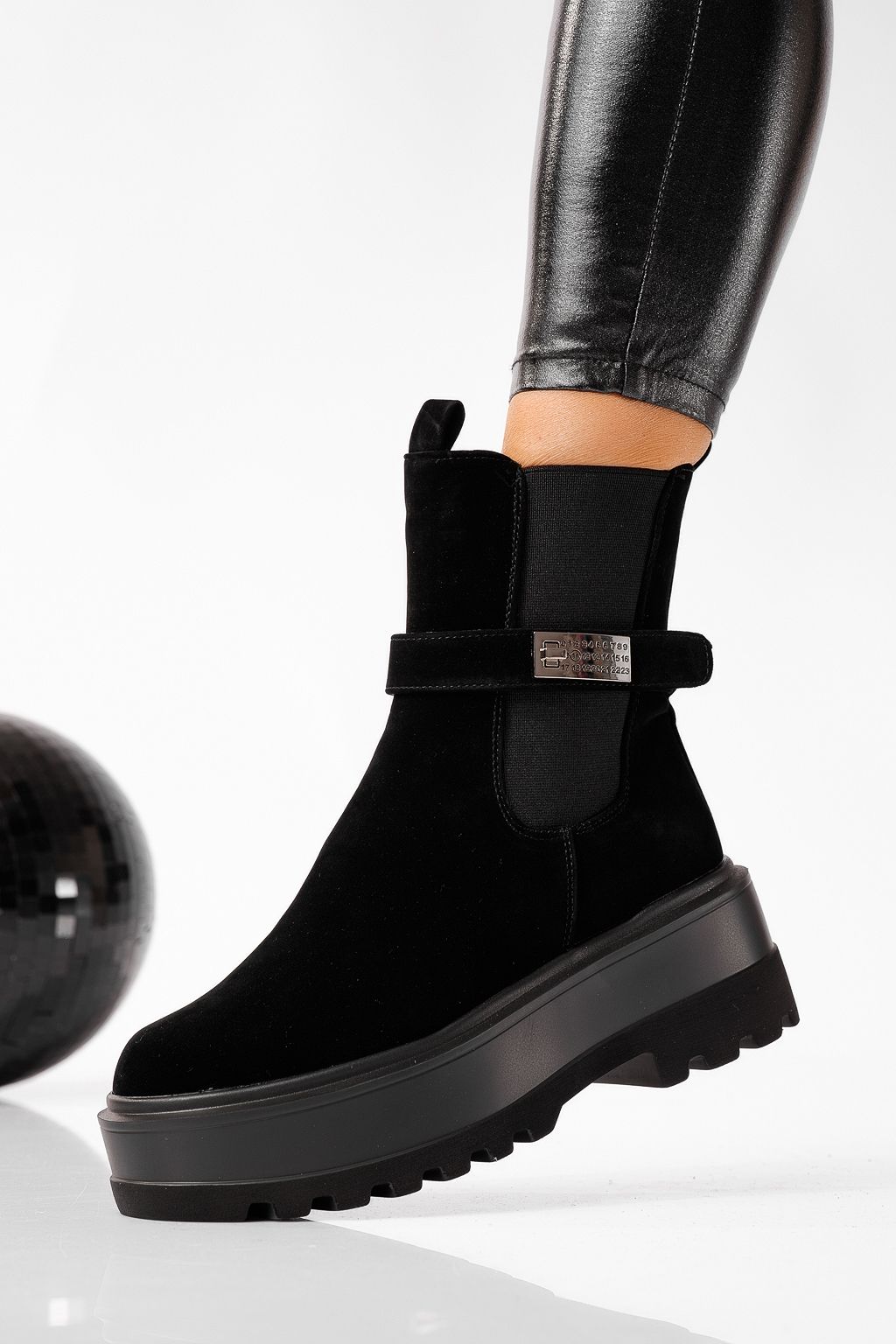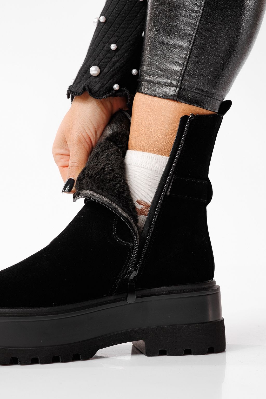 Дамски боти подплатени с пух черни от еко кожа Carla #22693