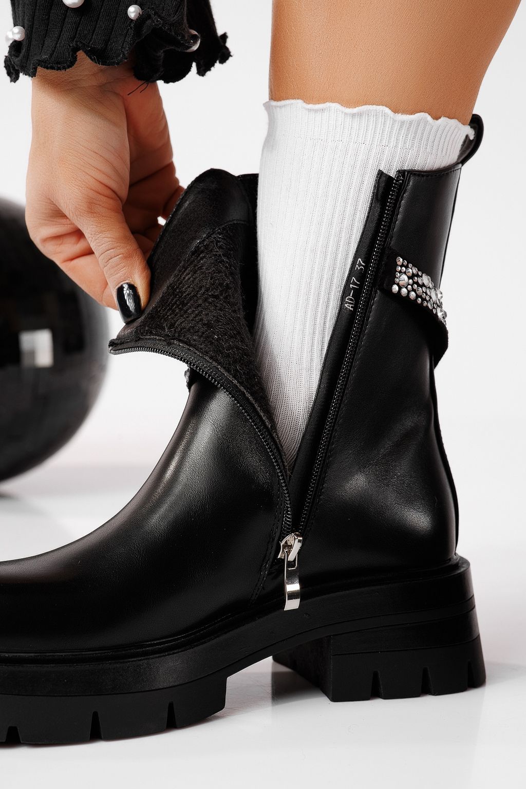 Дамски боти ватирани черни от еко кожа Teodora #22710