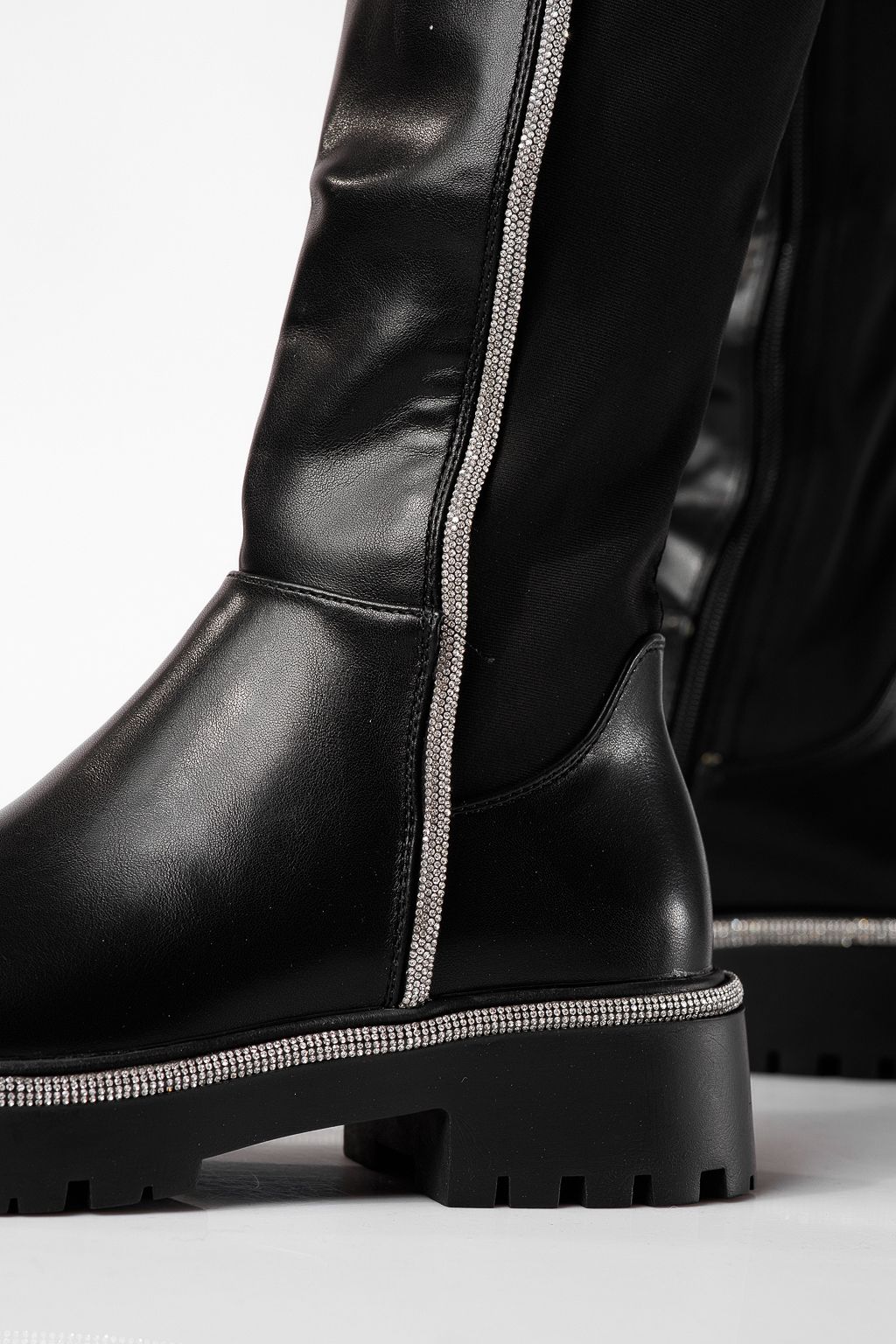 Къси дамски чизми ватирани черни от еко кожа Catalina #22711