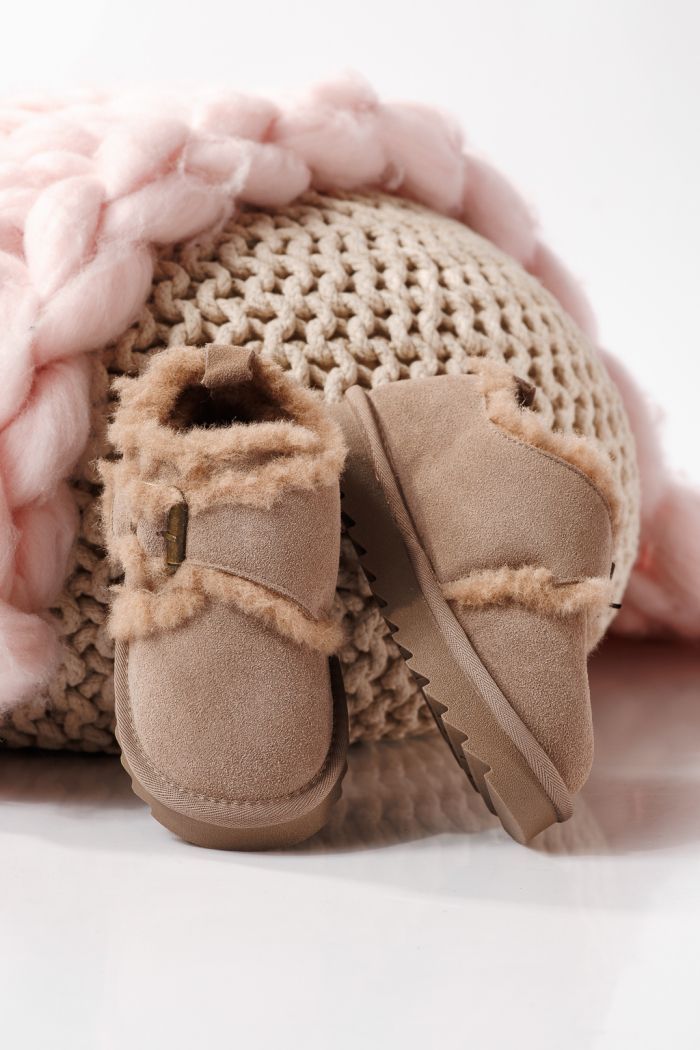 Боти за момичета подплатени с пух розови от обърната естествена кожа Diana #22722