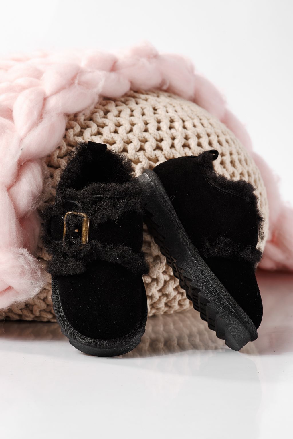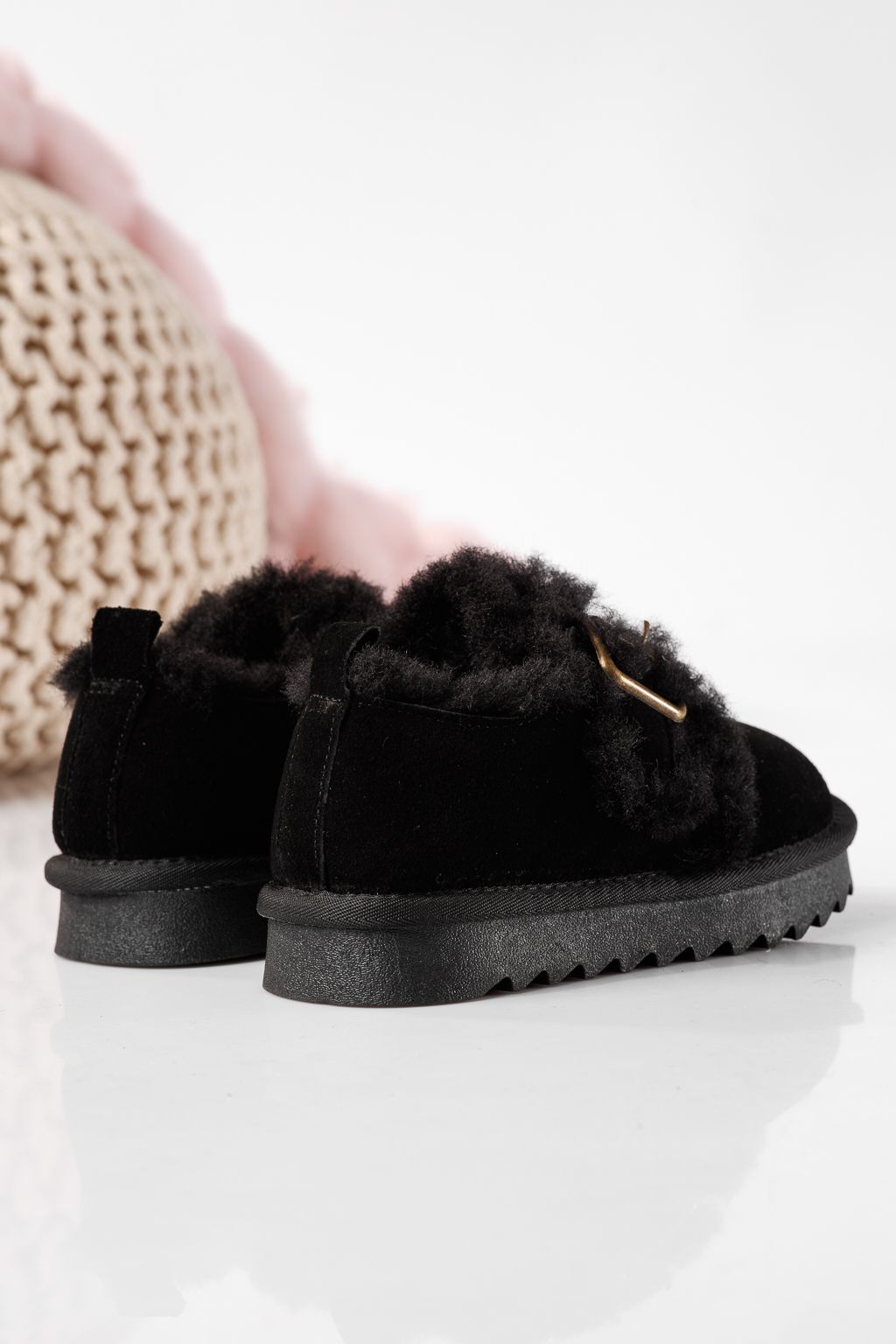 Боти за момичета подплатени с пух черни от обърната естествена кожа Diana #22724