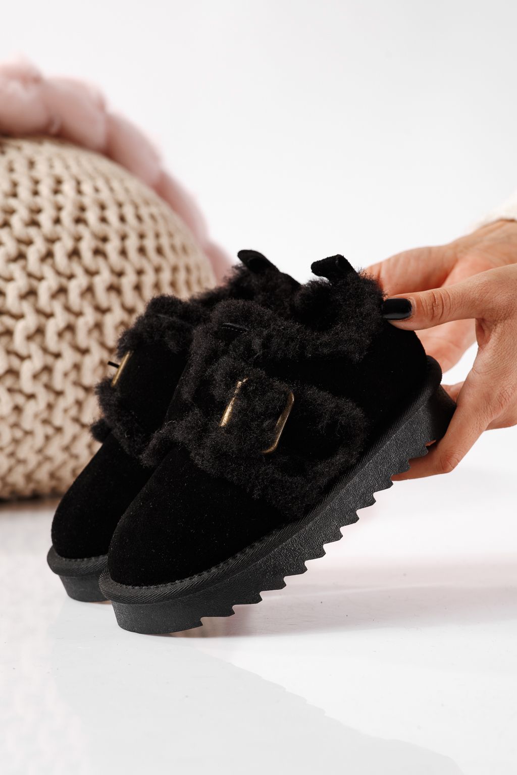 Начало Всички продукти Детски обувки Детски Боти Боти за момичета подплатени с пух черни от обърната естествена кожа Diana #22724