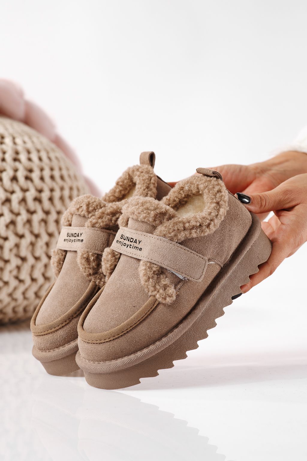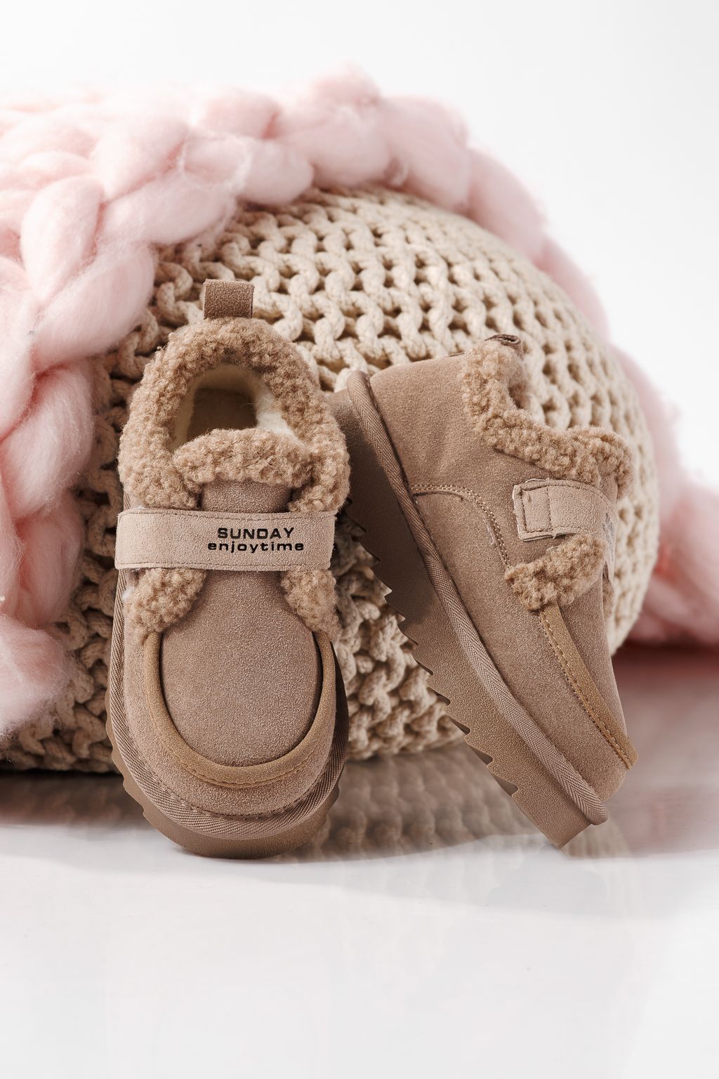 Боти за момичета подплатени с пух розови от обърната естествена кожа Delia #22727