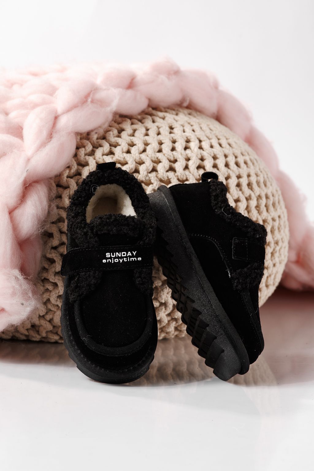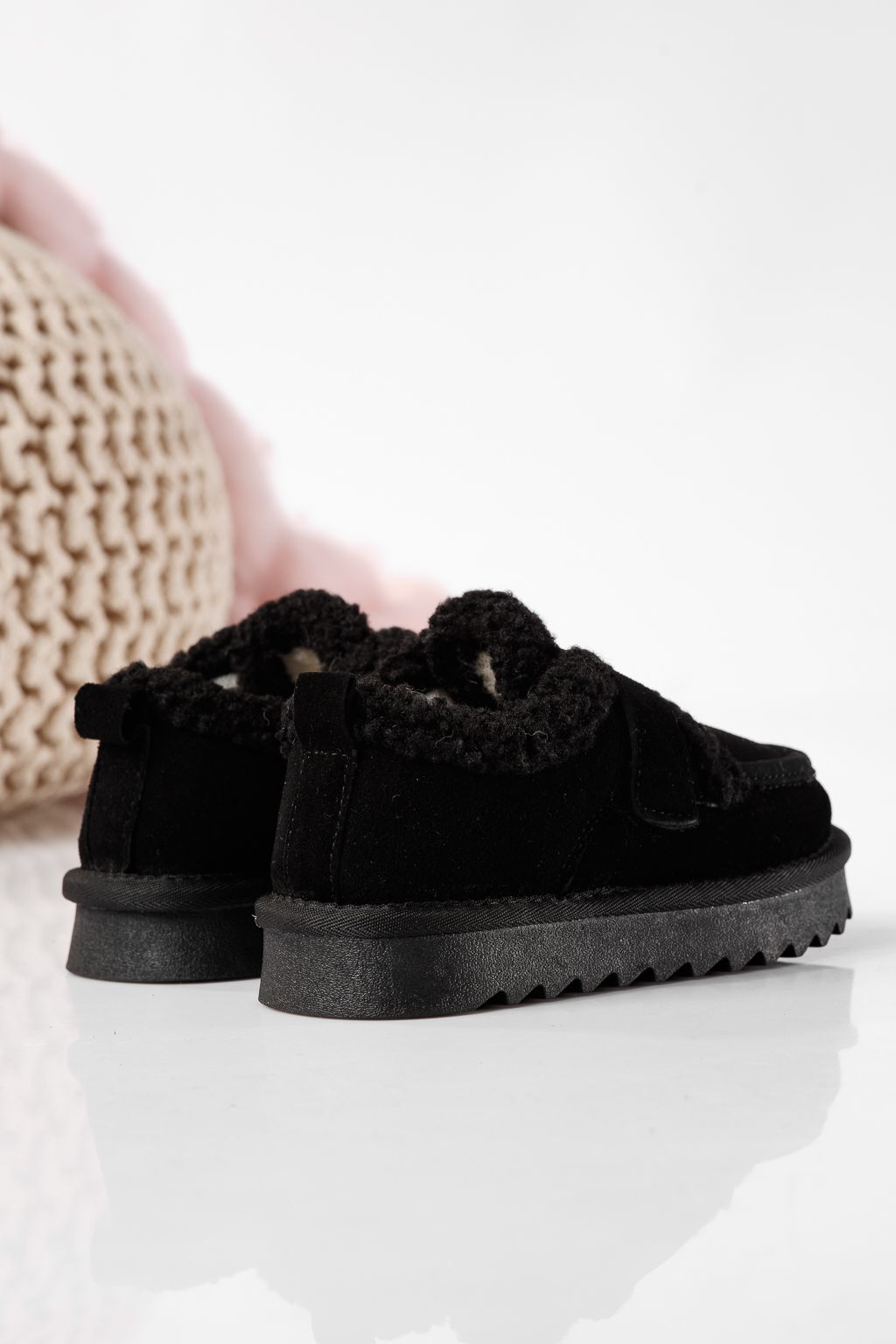 Боти за момичета подплатени с пух черни от обърната естествена кожа Delia #22728