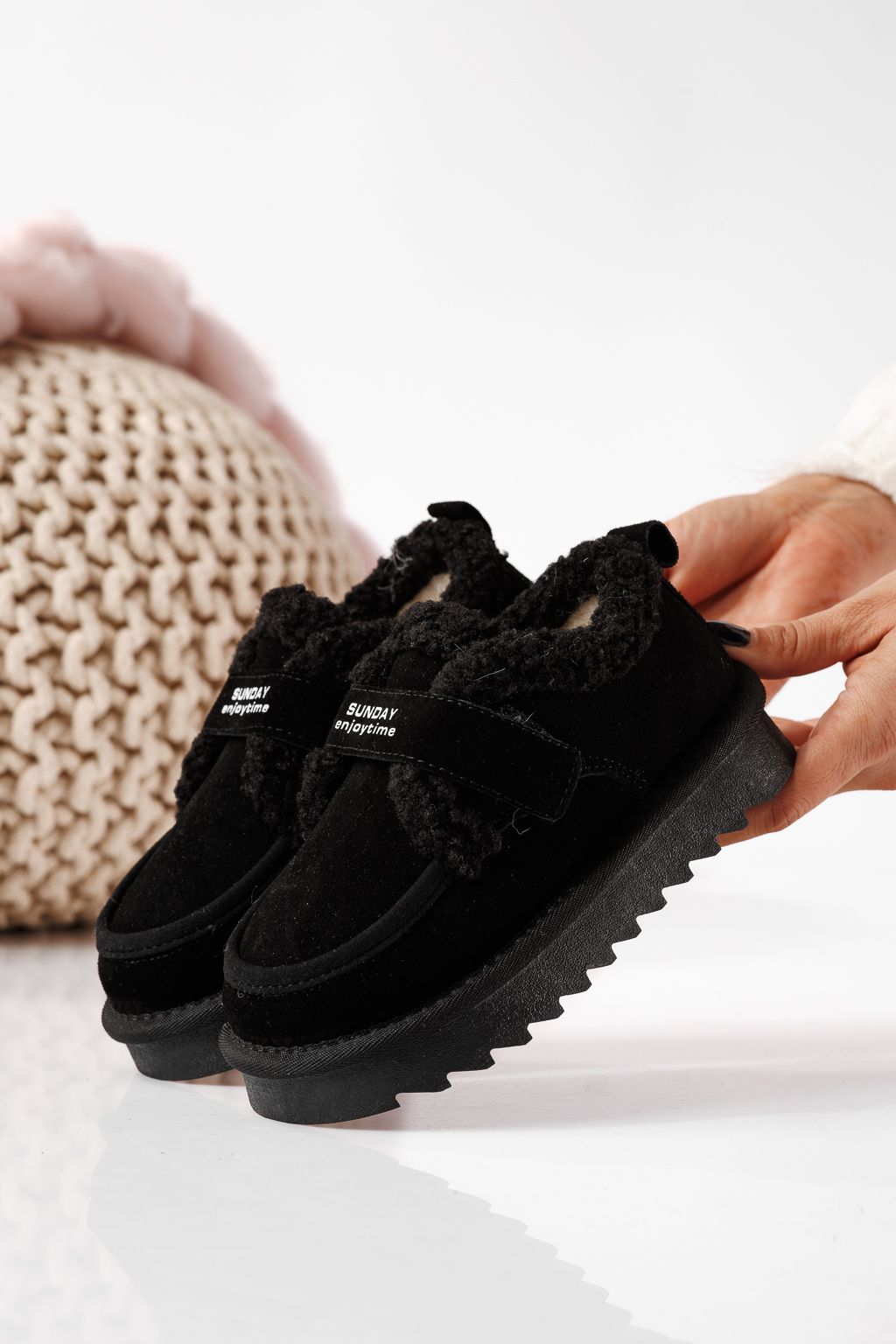 Боти за момичета подплатени с пух черни от обърната естествена кожа Delia #22730