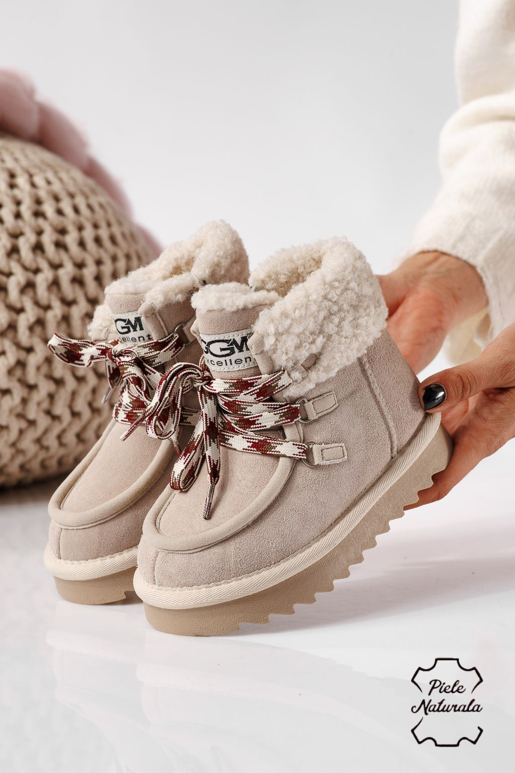 Боти за момичета подплатени с пух сиви от обърната естествена кожа Gloria #22733