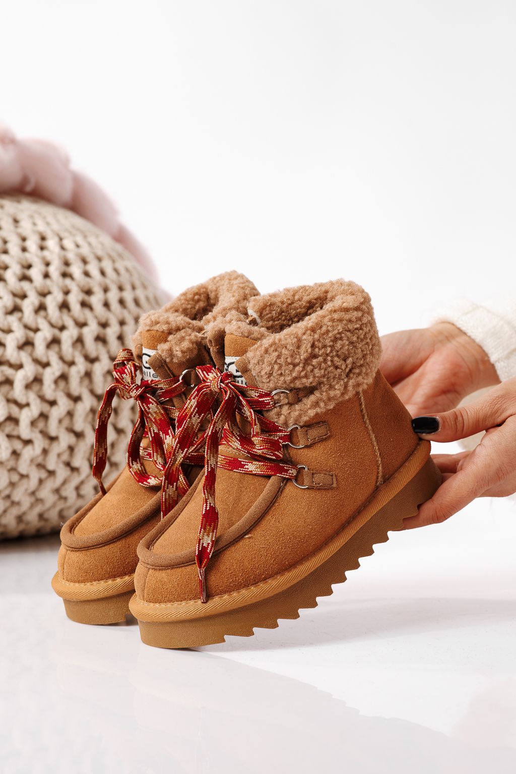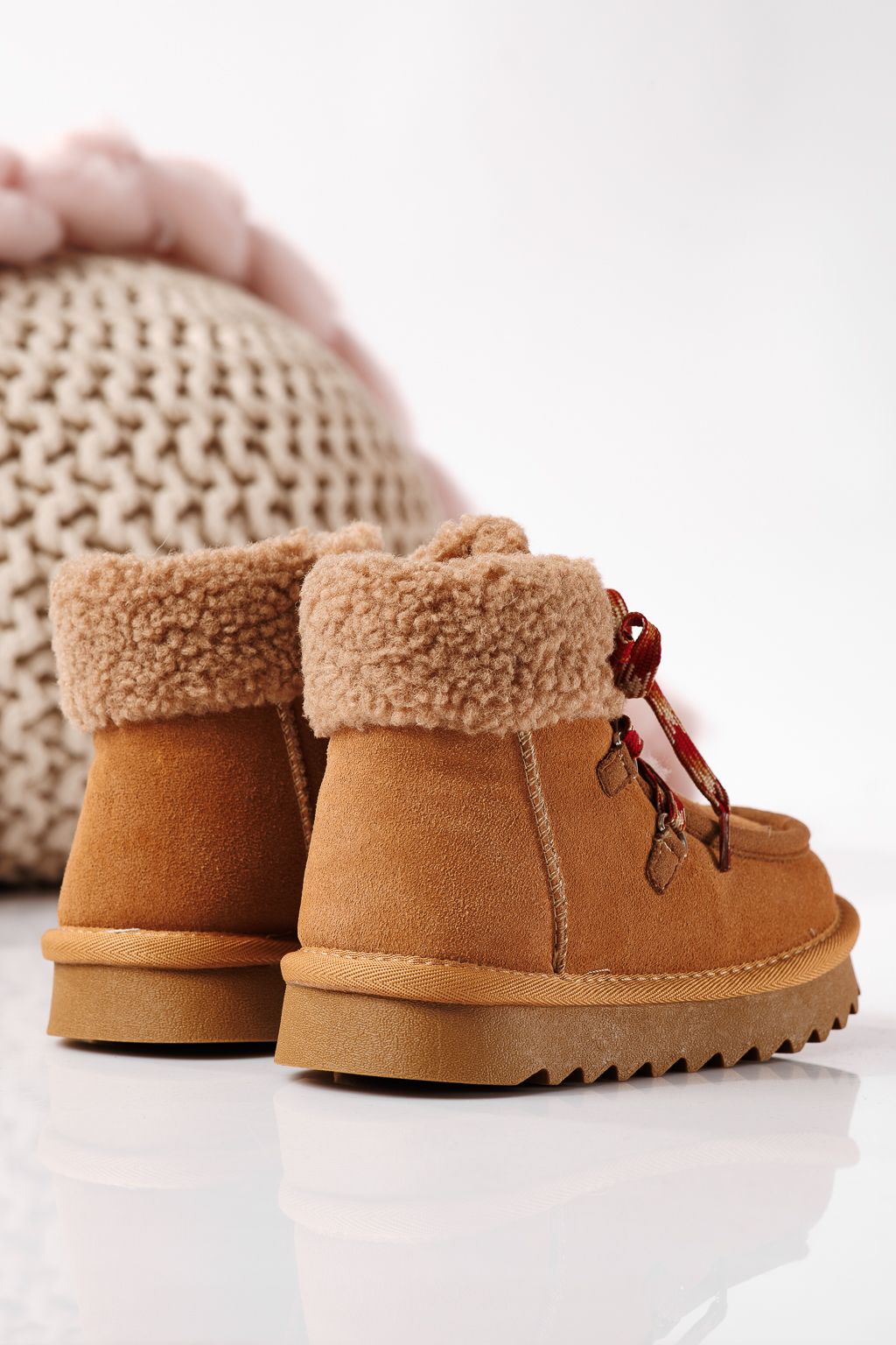 Боти за момичета подплатени с пух кафяви от обърната естествена кожа Gloria #22736