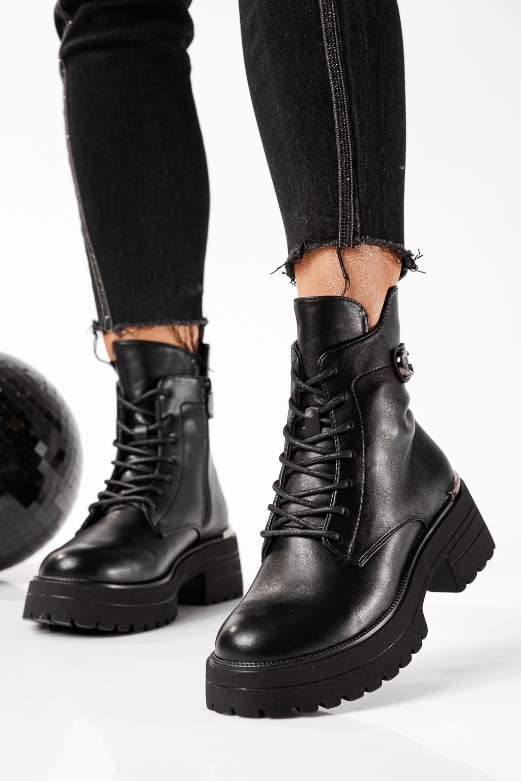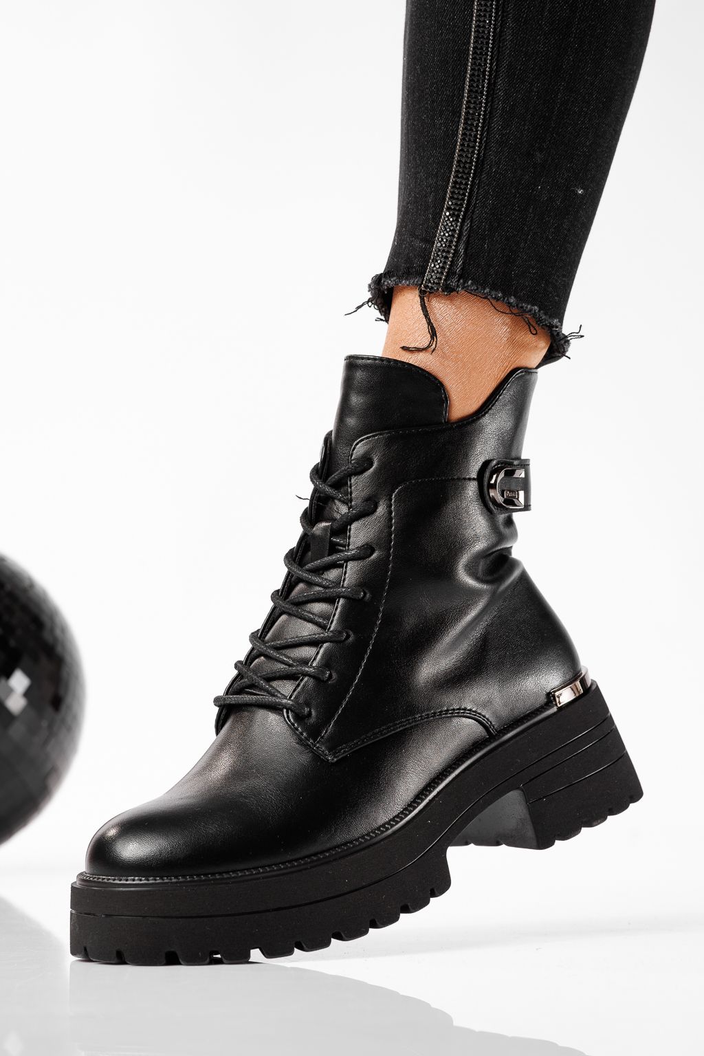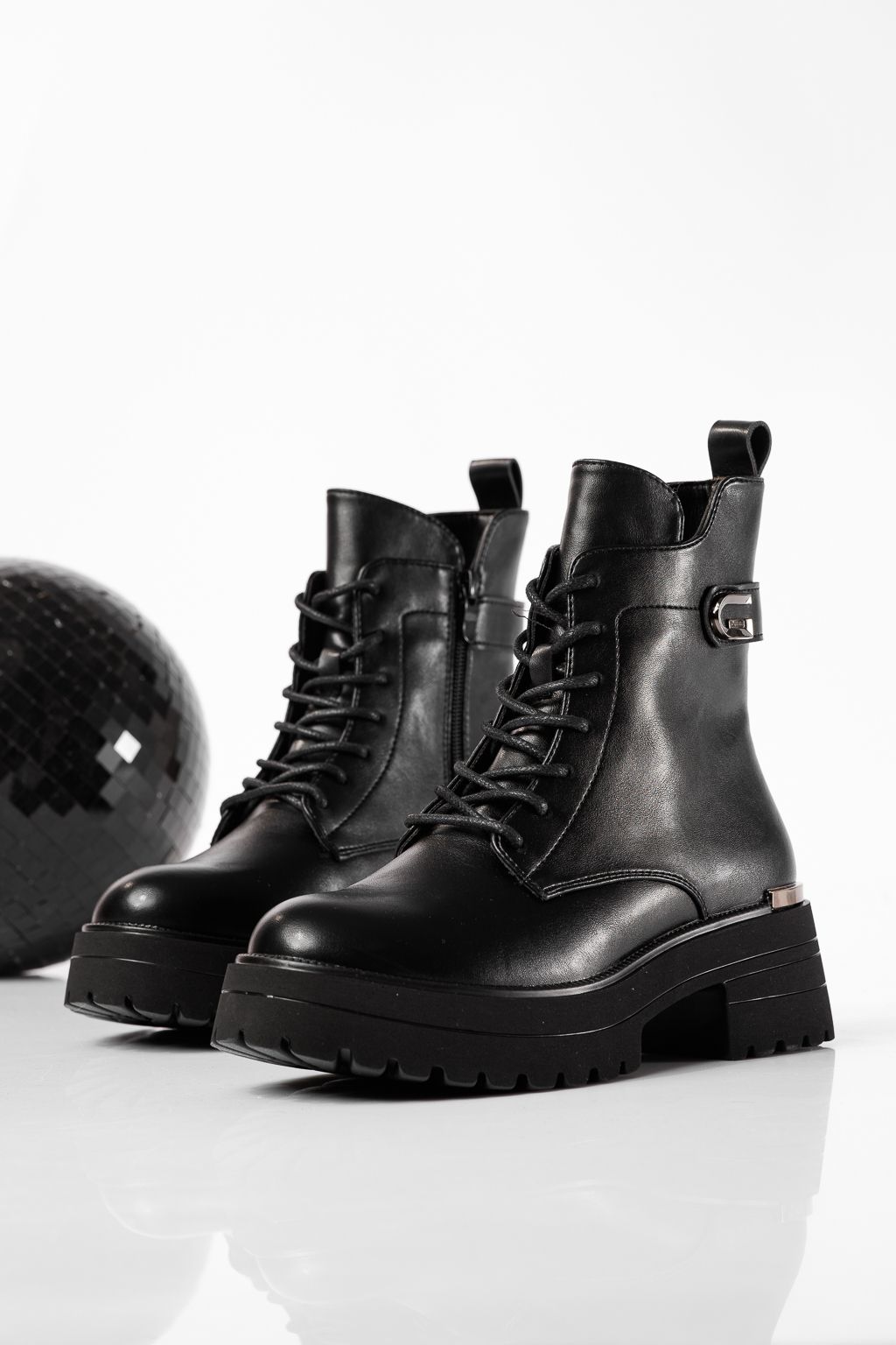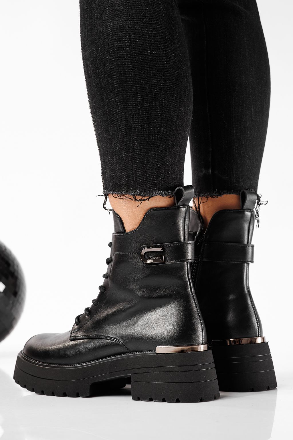 Дамски боти подплатени с пух черни от еко кожа Dalia #22768