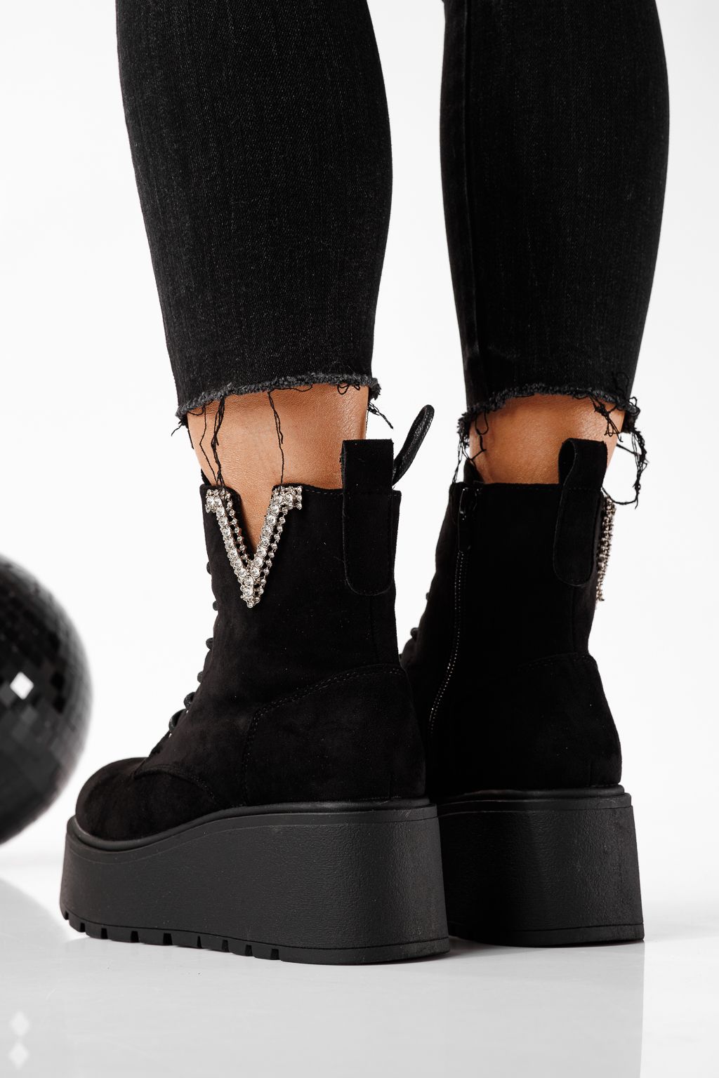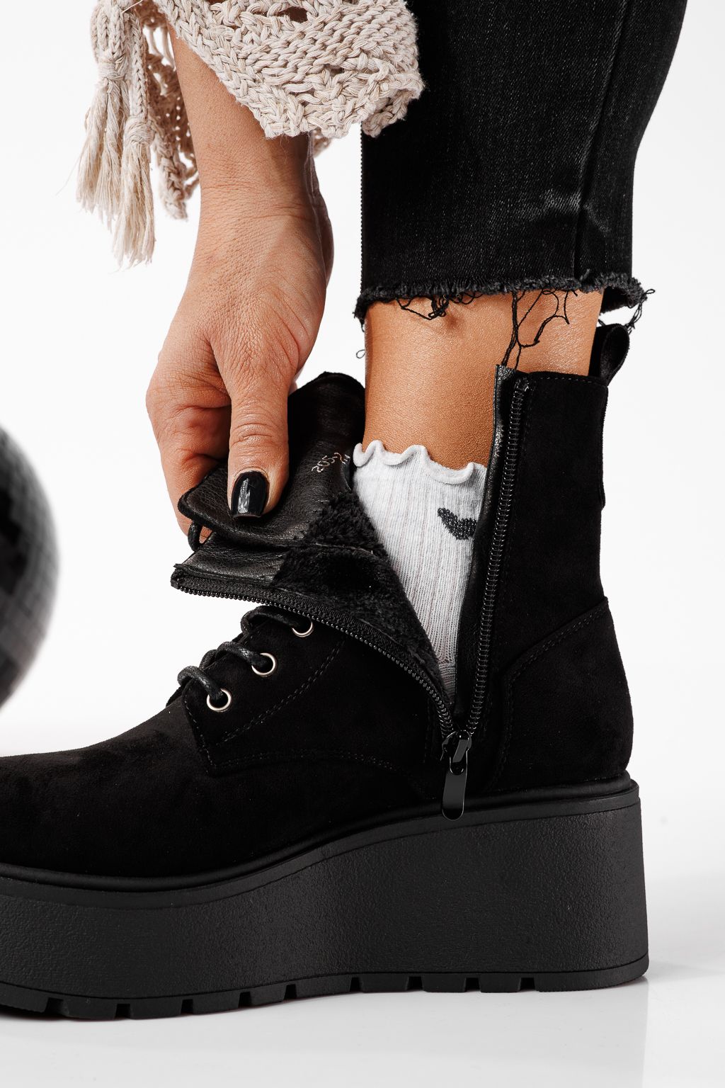 Дамски боти подплатени с пух черни от обърната еко кожа Ema #22770