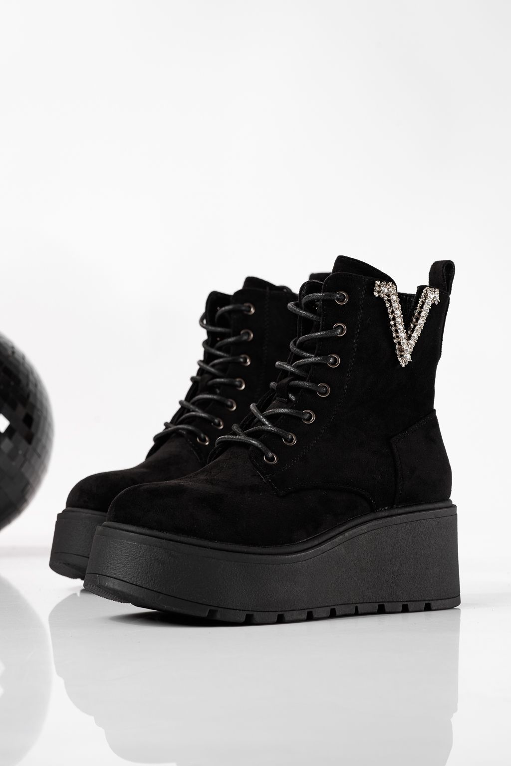 Начало Всички продукти ботуши за жени Зимни боти Дамски боти подплатени с пух черни от обърната еко кожа Ema #22770