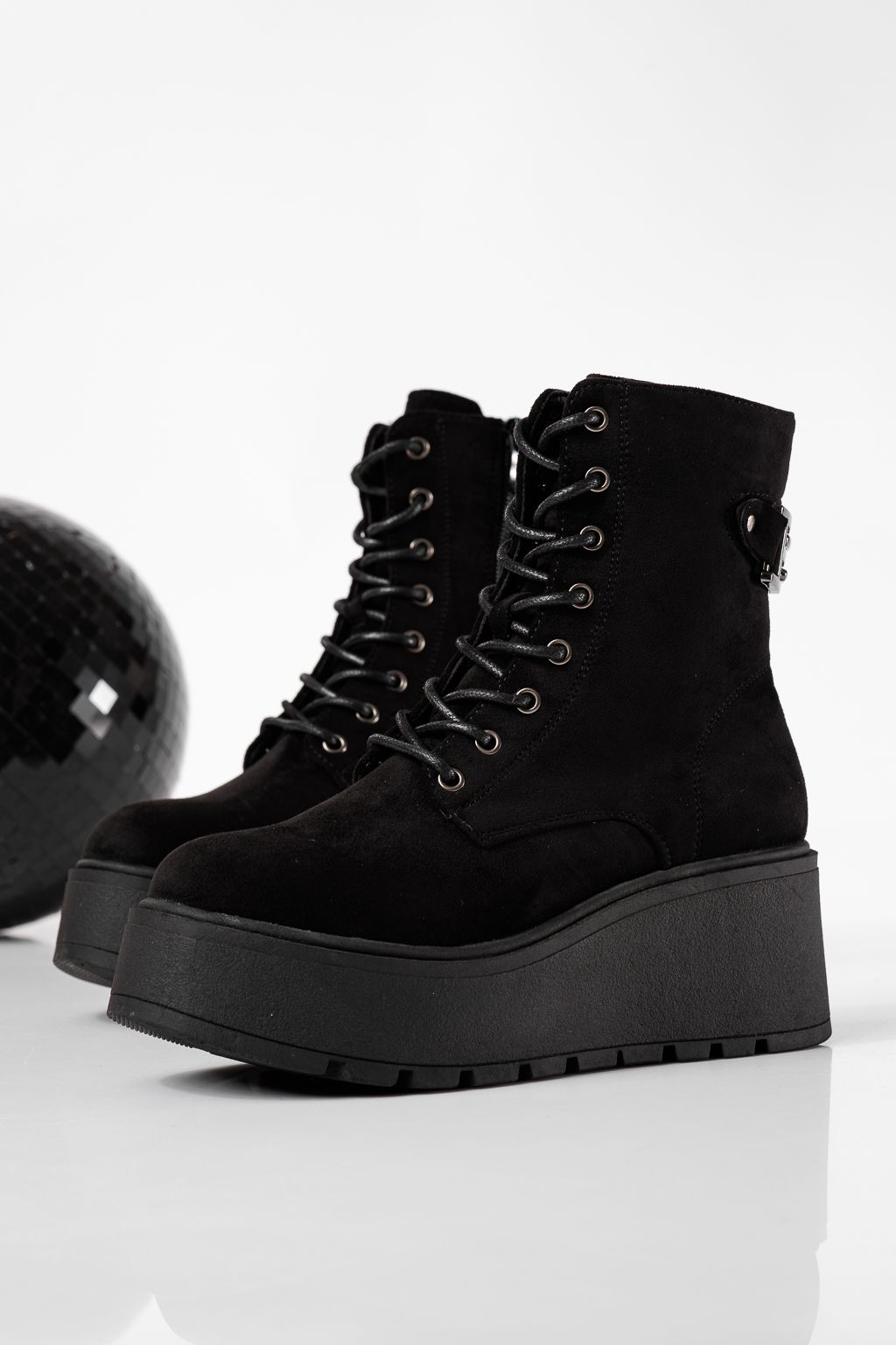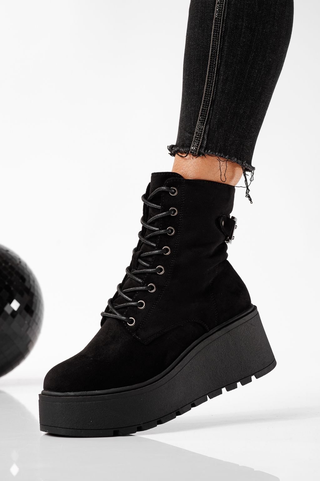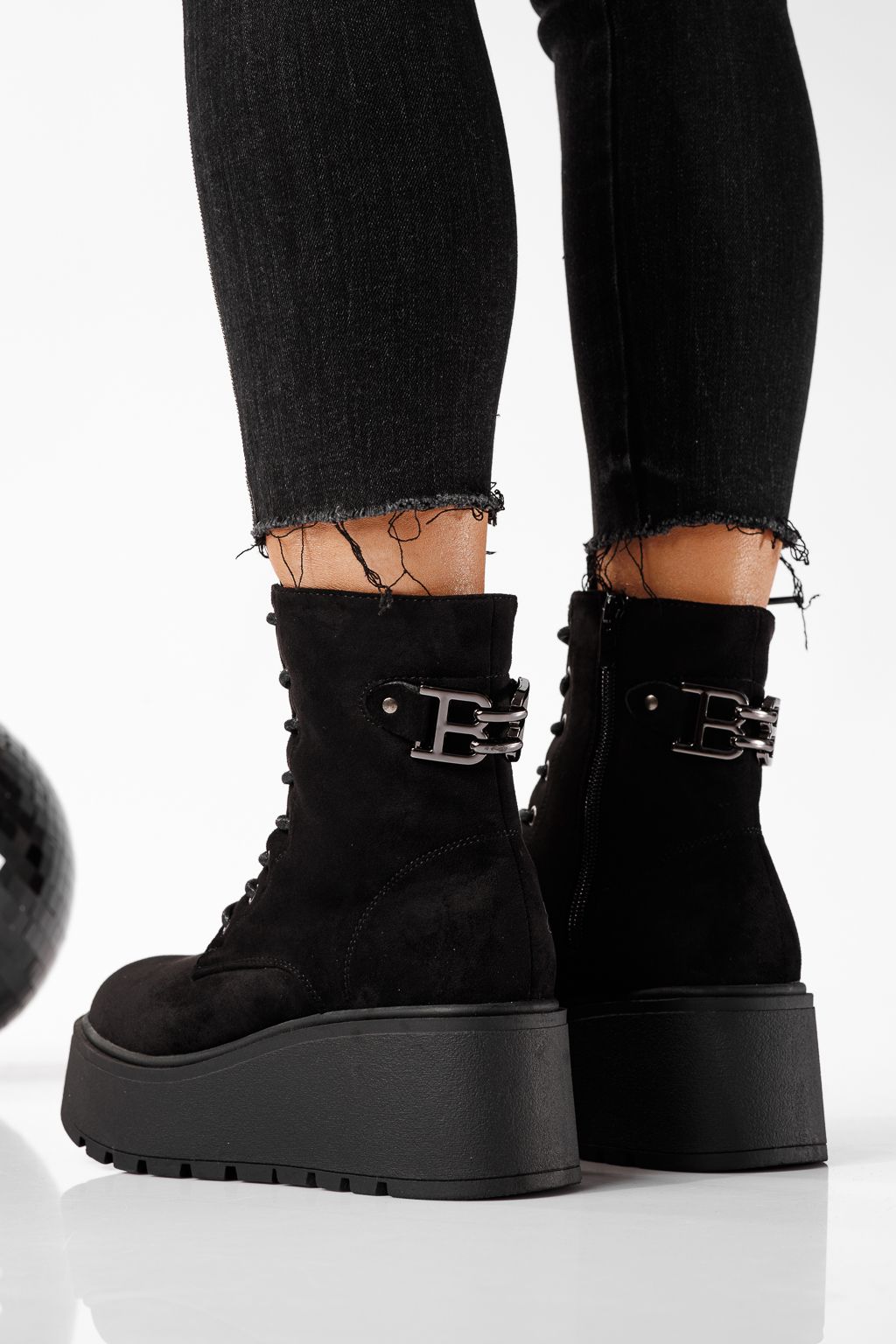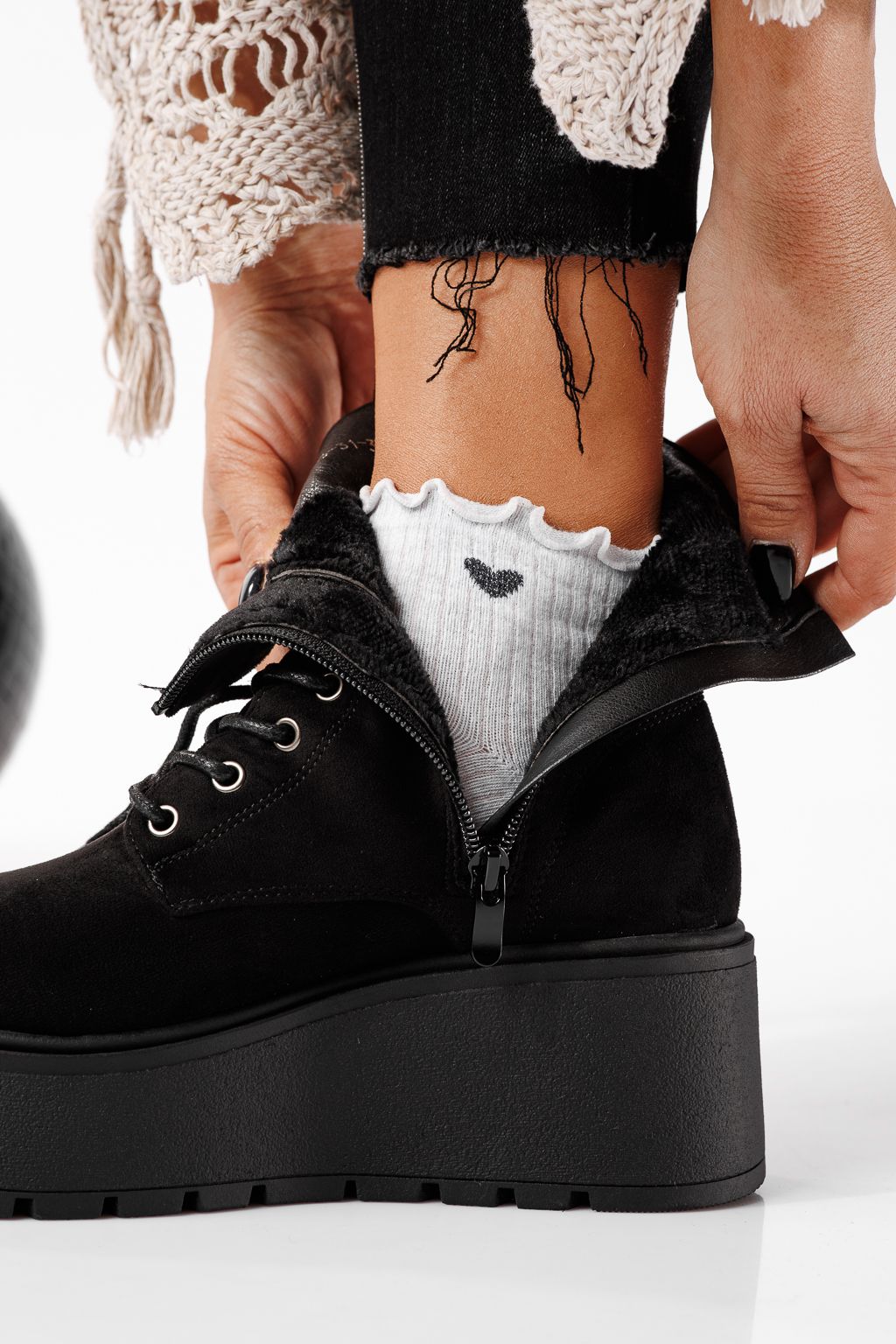 Начало Всички продукти ботуши за жени Зимни боти Дамски боти подплатени с пух черни от обърната еко кожа Liana #22786