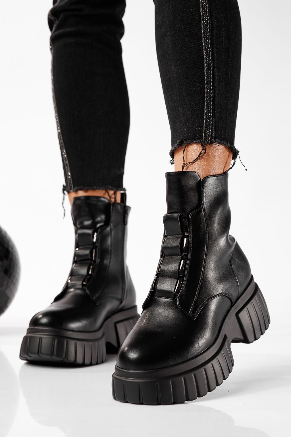 Дамски боти подплатени с пух черни от еко кожа Maia #22787