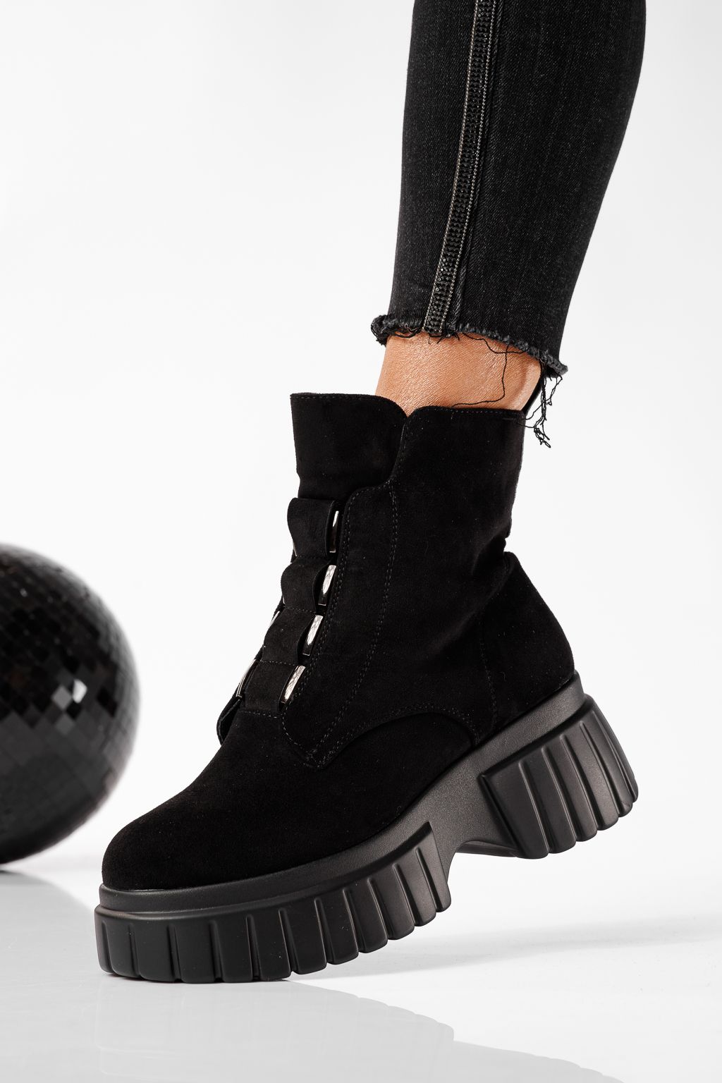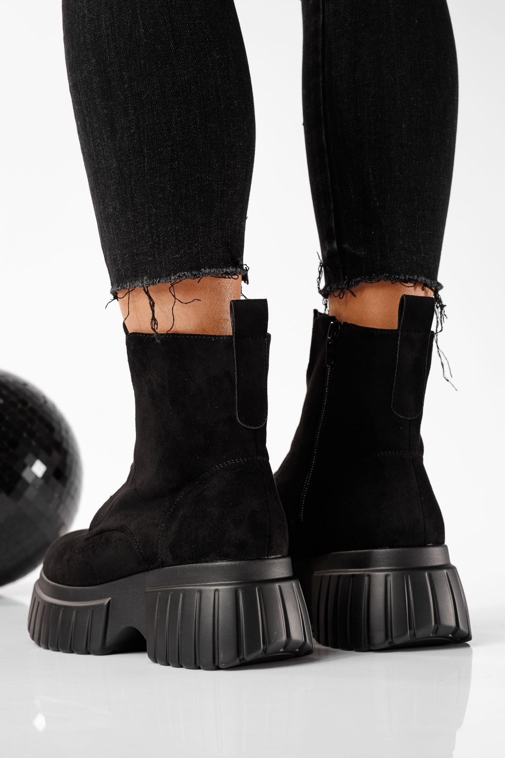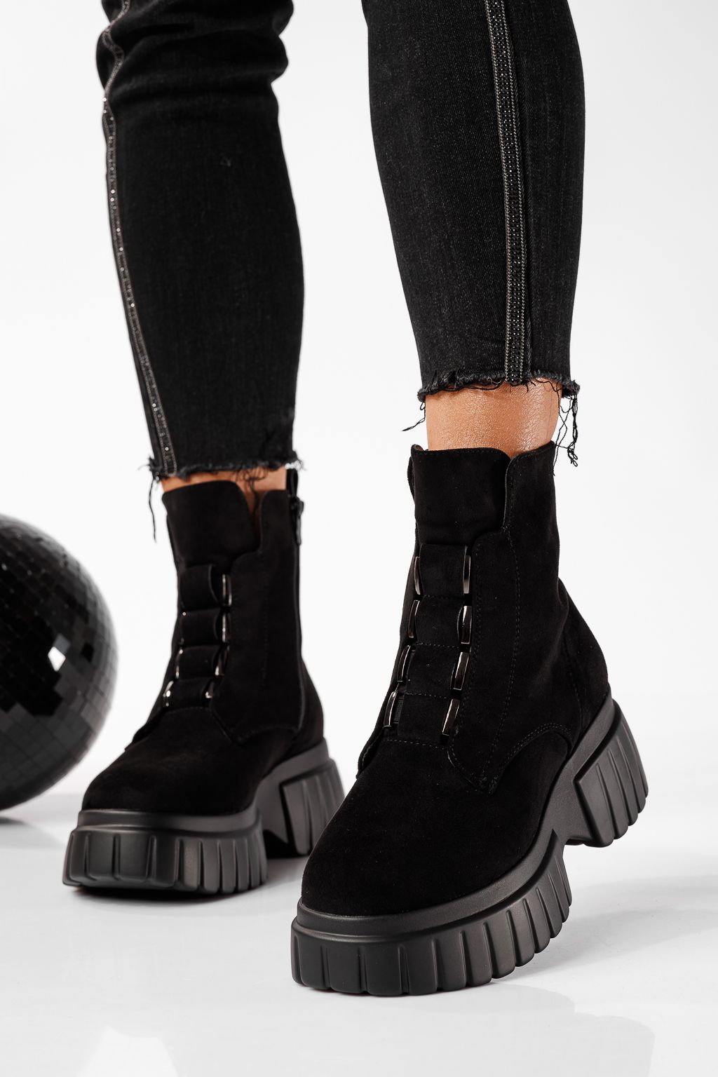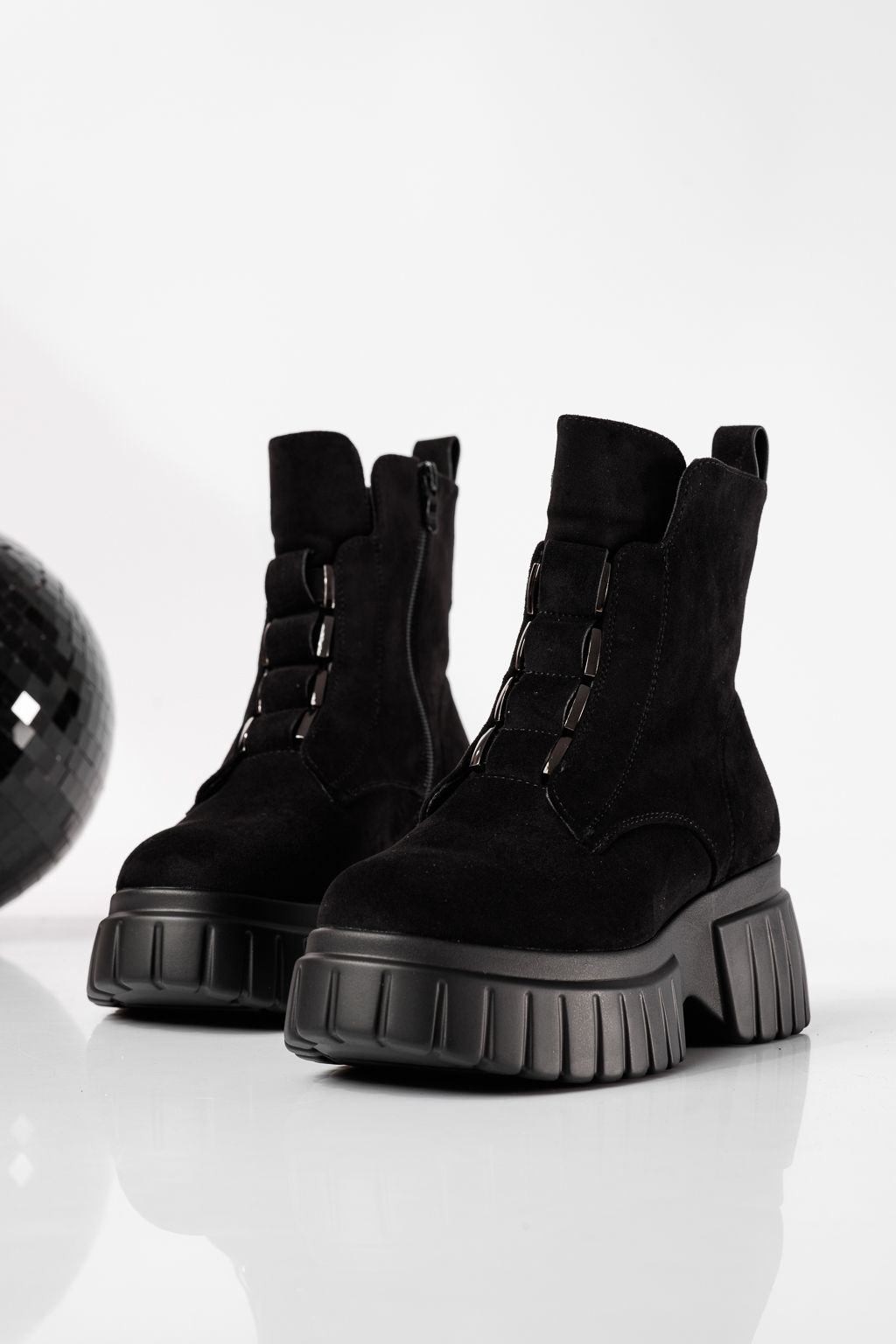 Дамски боти подплатени с пух черни от обърната еко кожа Mia #22788