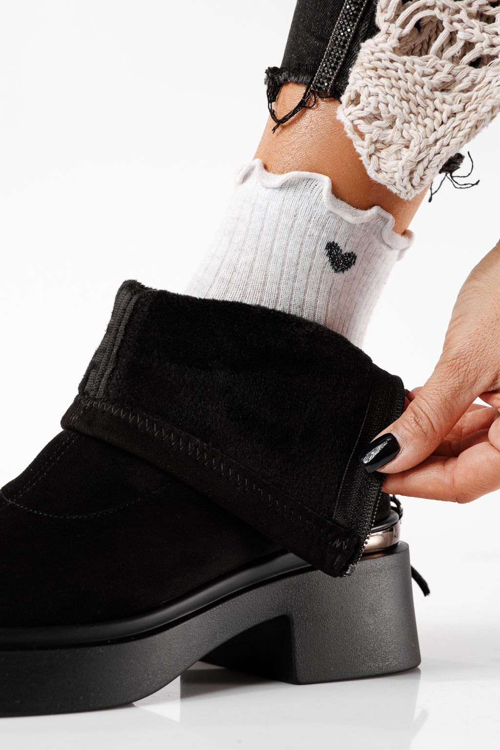 Дамски боти подплатени с пух черни от обърната еко кожа Pixie #22797