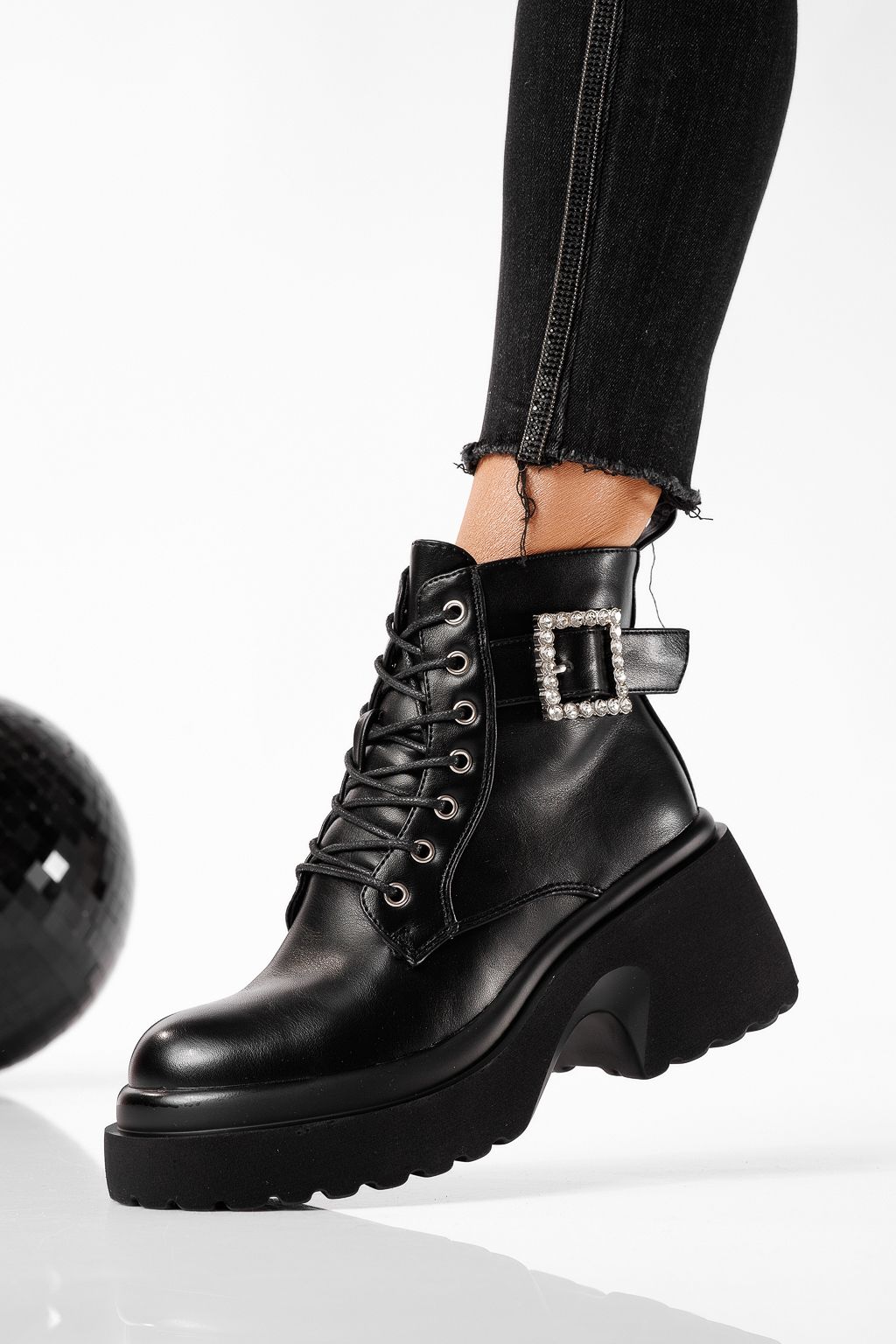 Дамски боти подплатени с пух черни от еко кожа Pixie #22799
