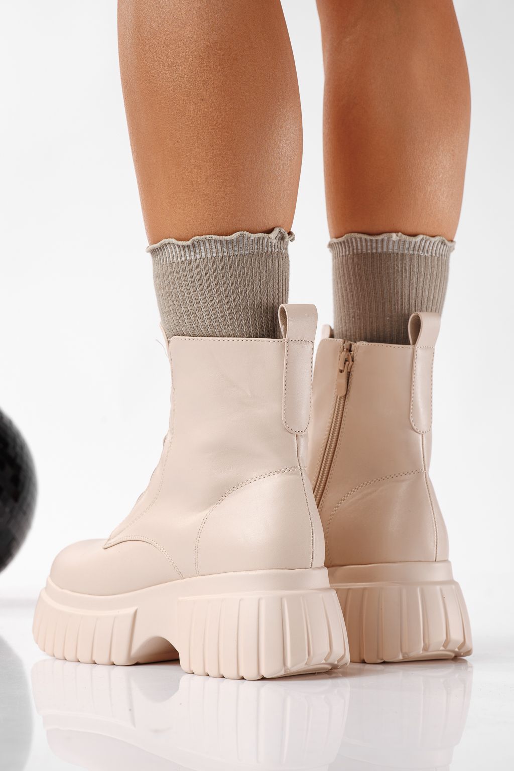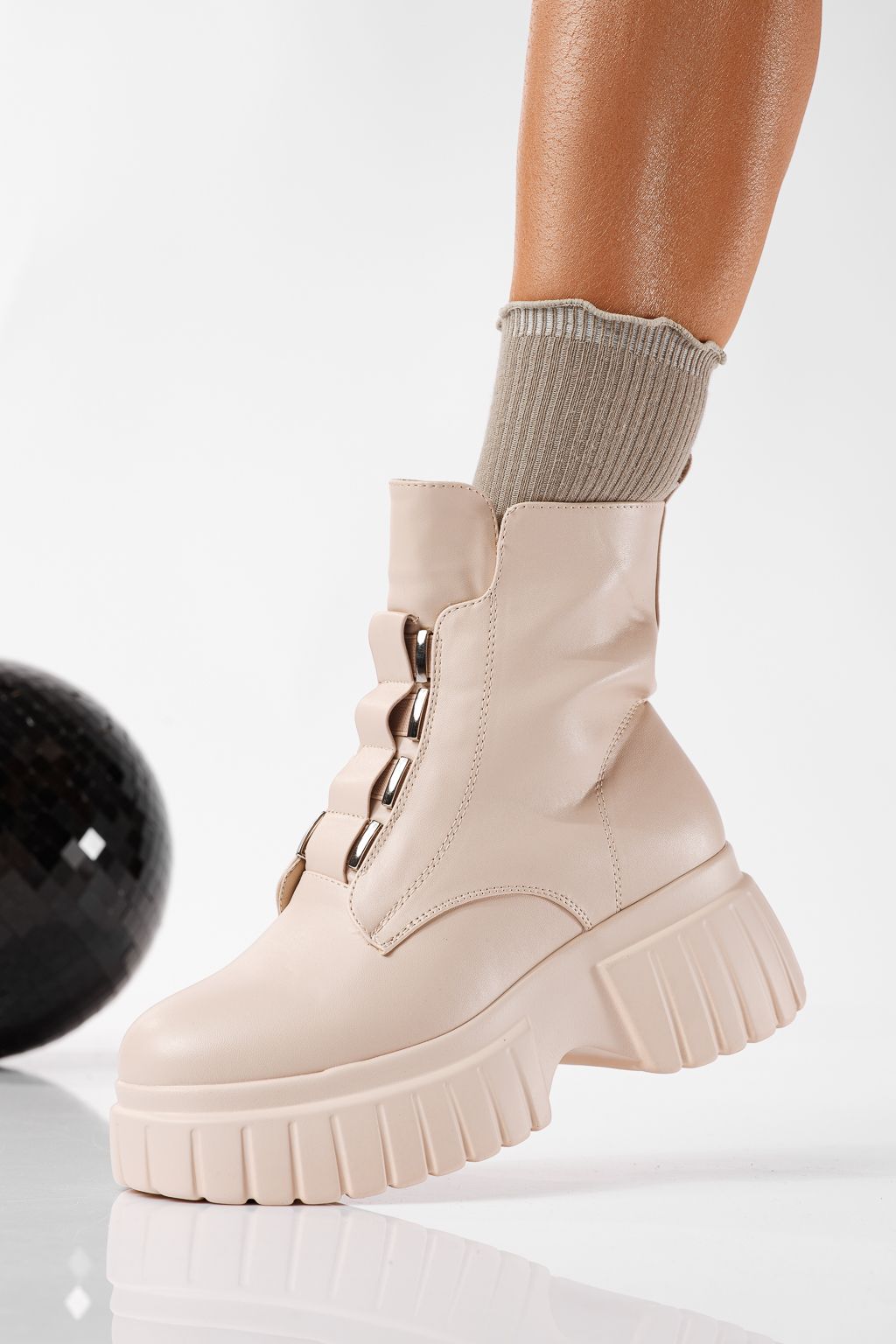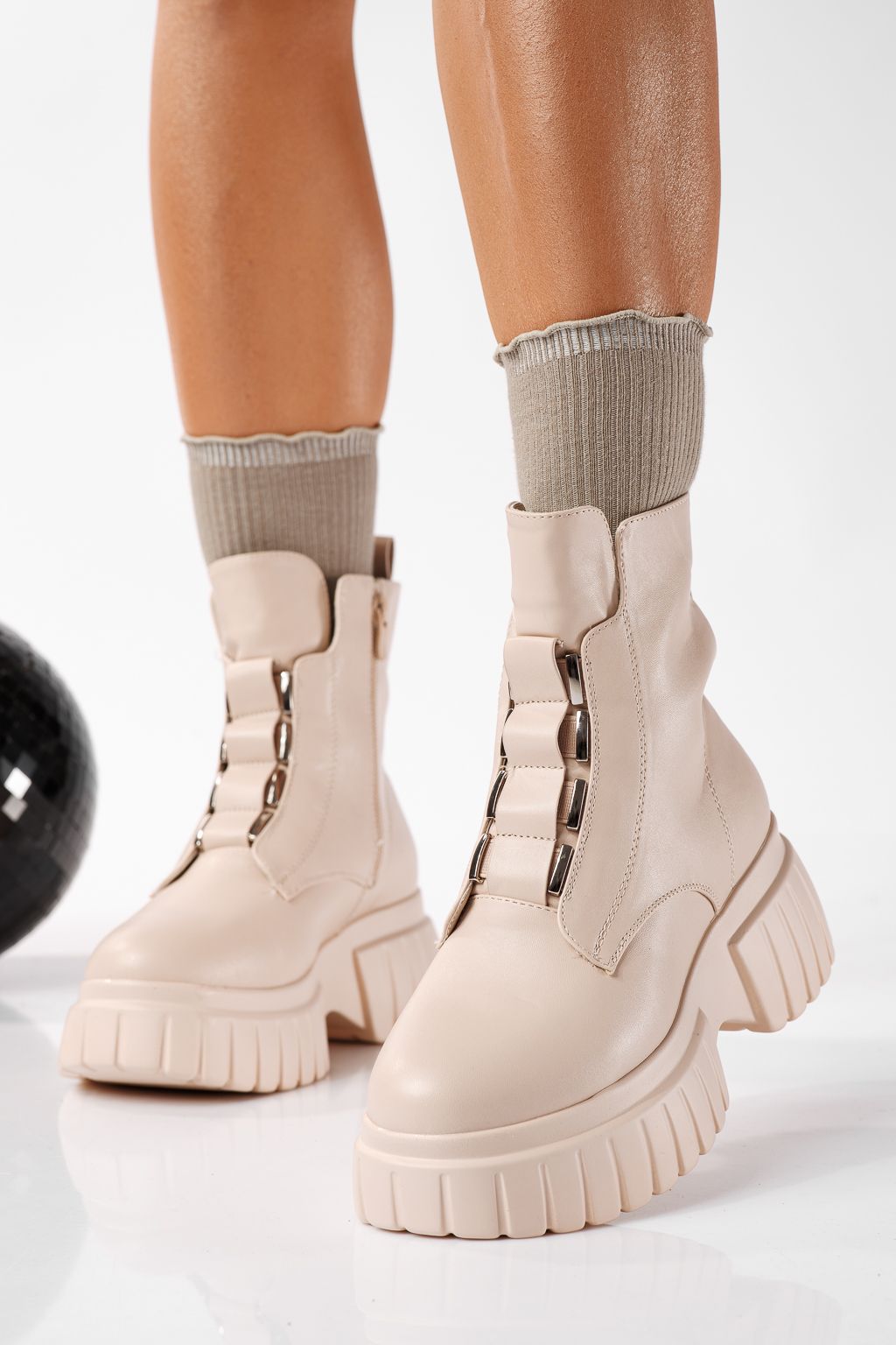 Дамски боти подплатени с пух бежови от еко кожа Maia #22809