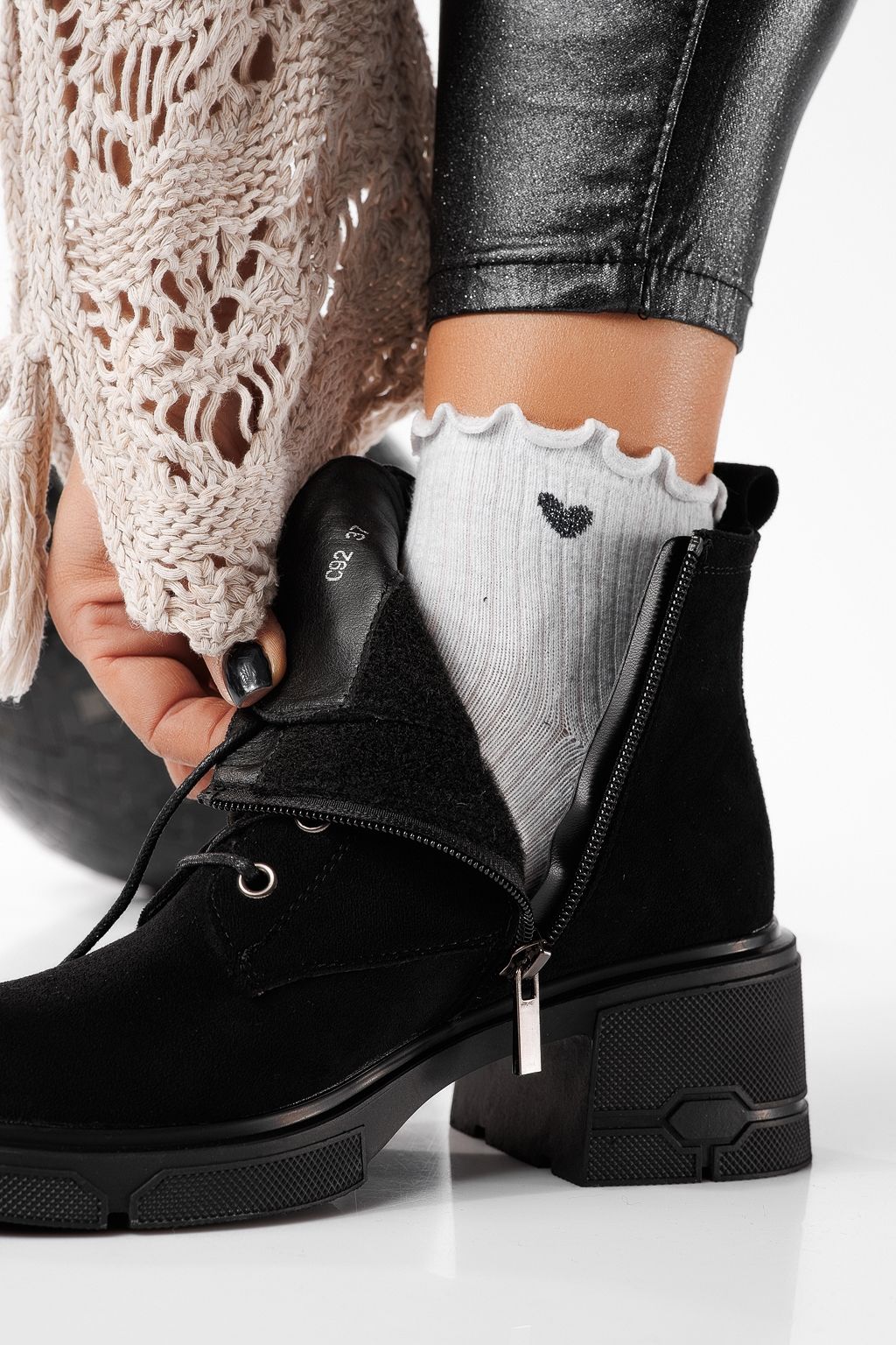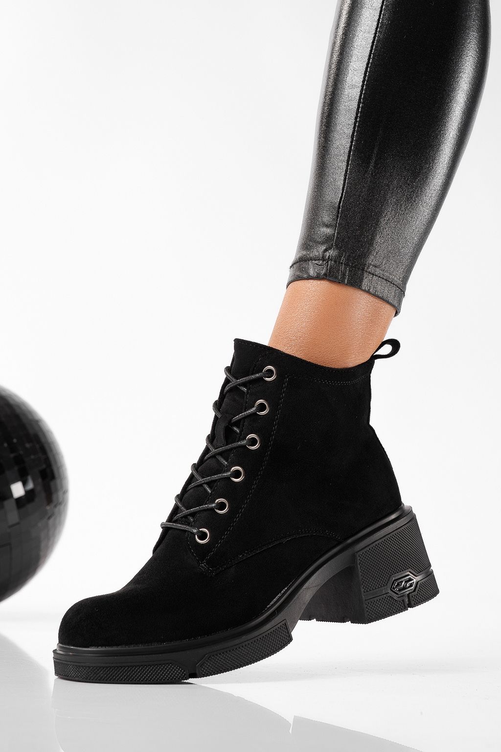 Дамски боти подплатени с пух черни от обърната еко кожа Aryan #22821