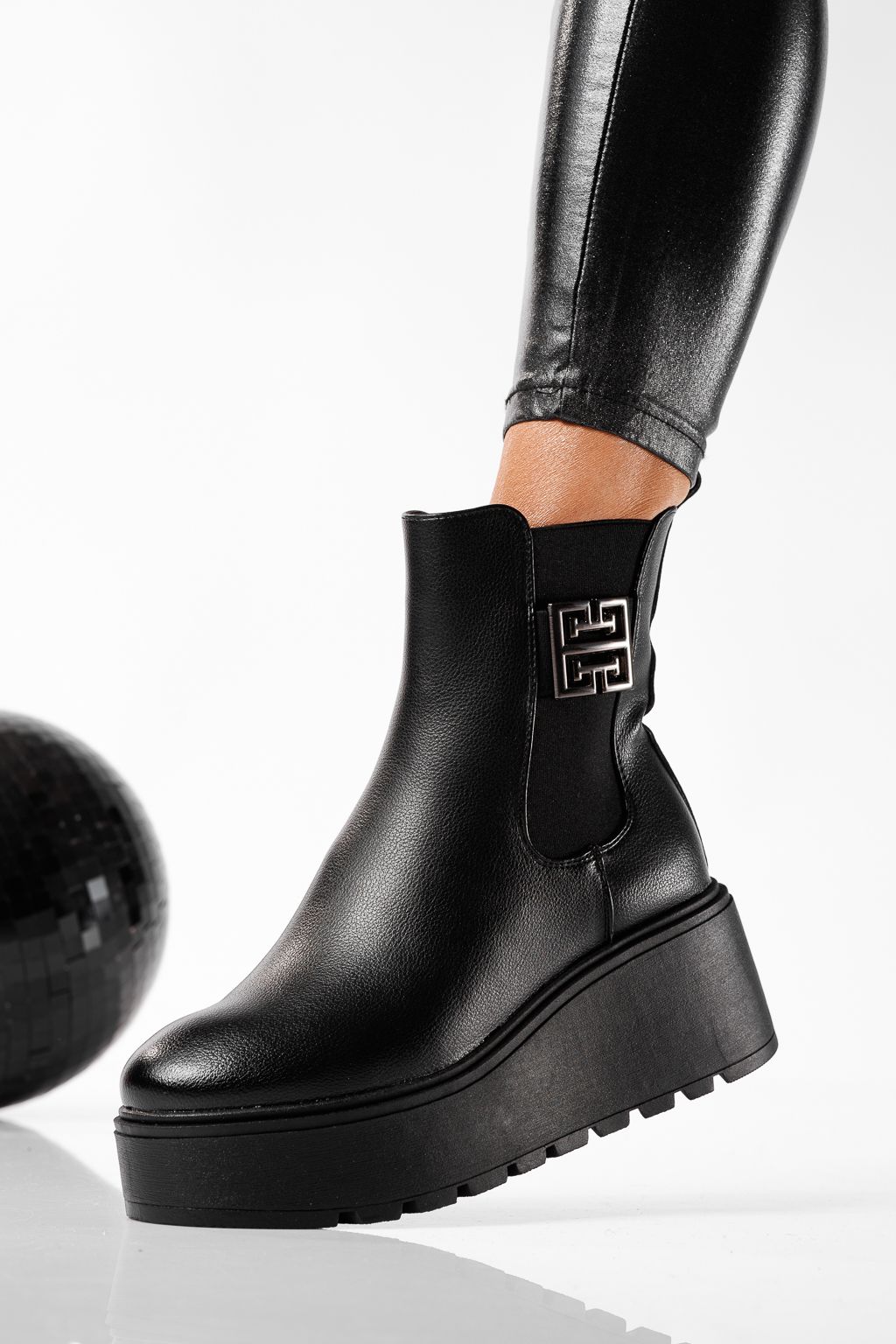 Дамски боти подплатени с пух черни от еко кожа Aurora #22822