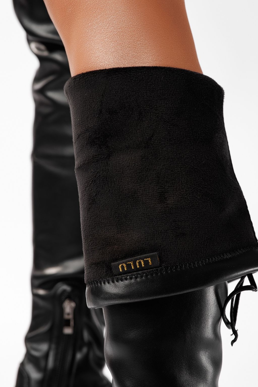 Дълги дамски чизми подплатени с пух черни от еко кожа Brook #22831