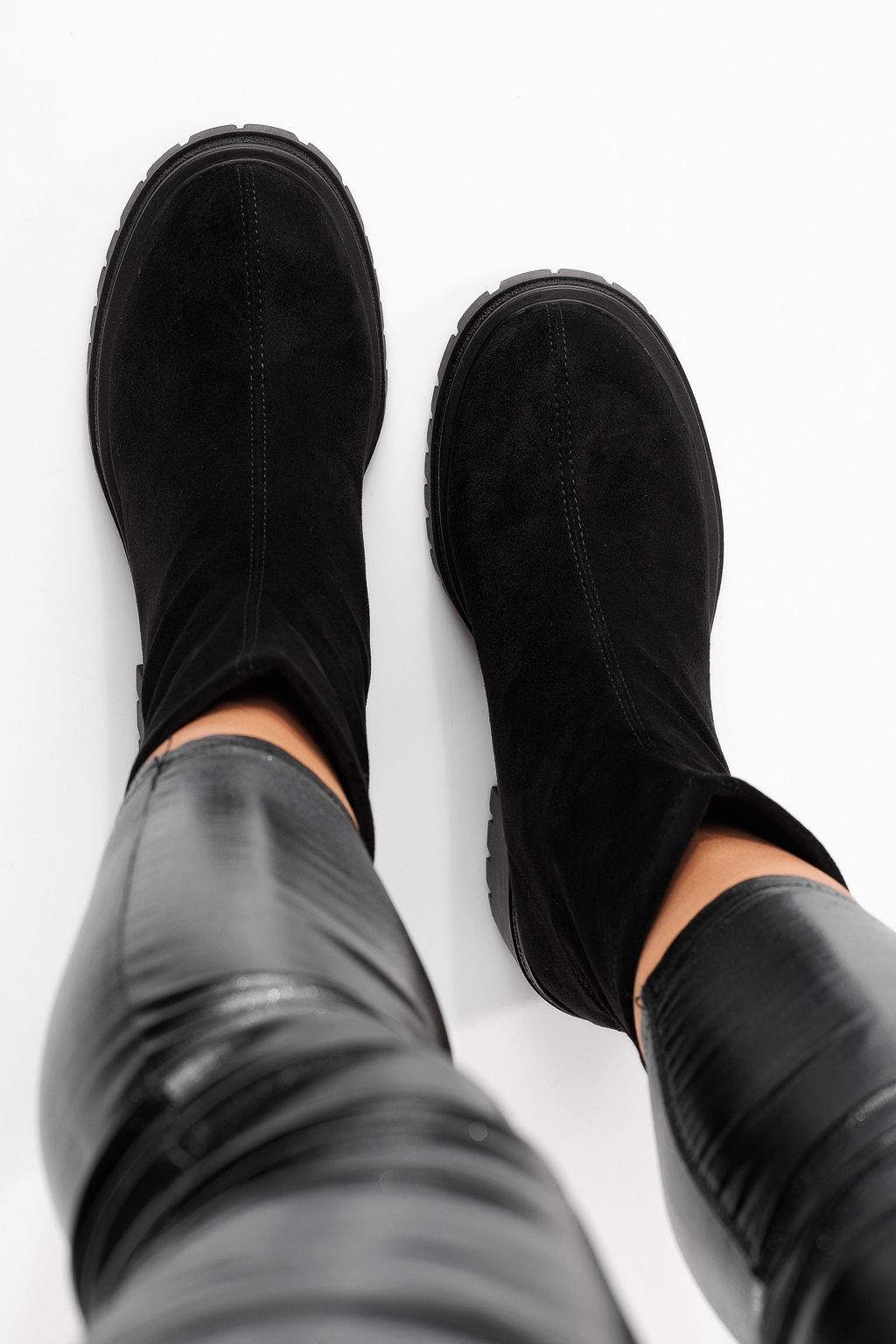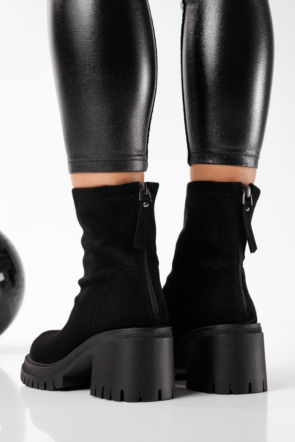 Дамски боти подплатени с пух черни от обърната еко кожа Calypso #22832