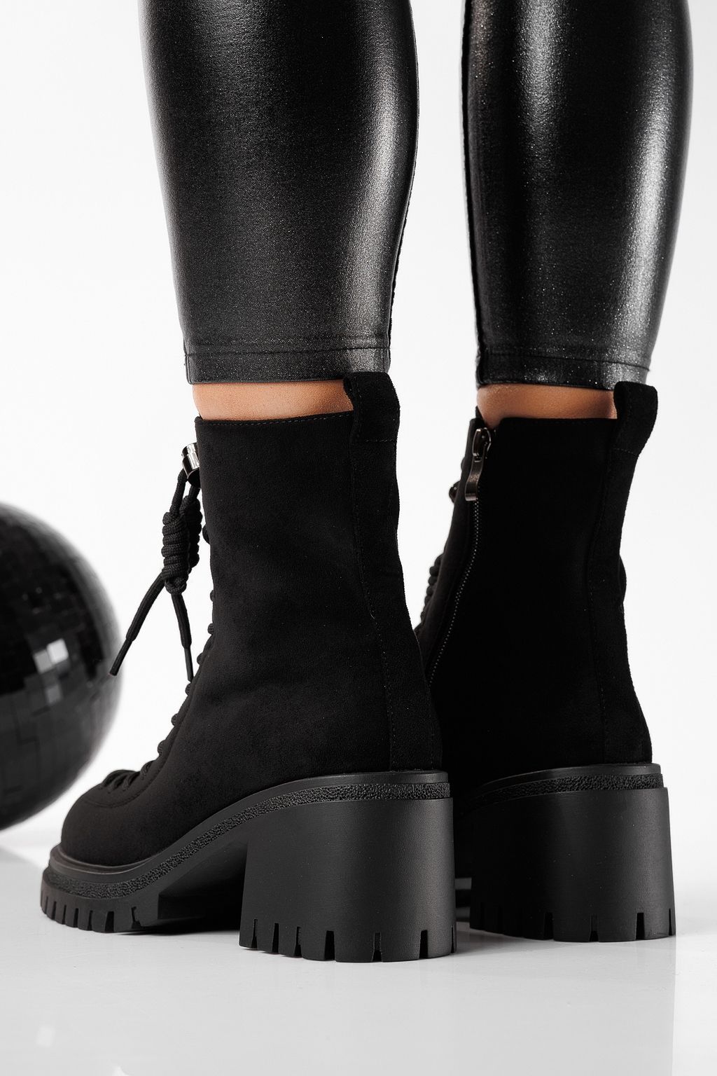 Начало Дамски боти подплатени с пух черни от обърната еко кожа Casilda #22836