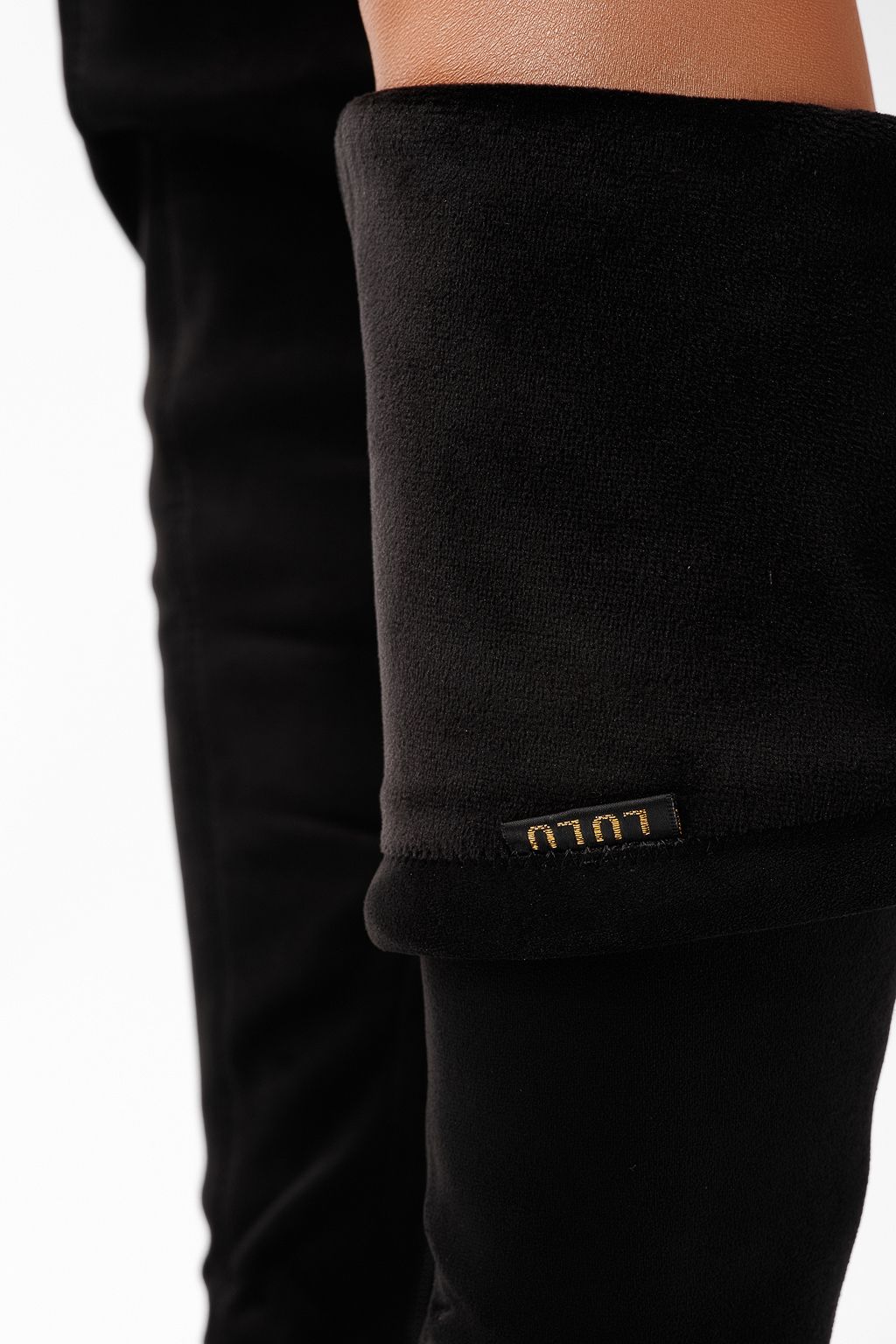 Дълги дамски чизми подплатени с пух черни от обърната еко кожа Chabela #22838