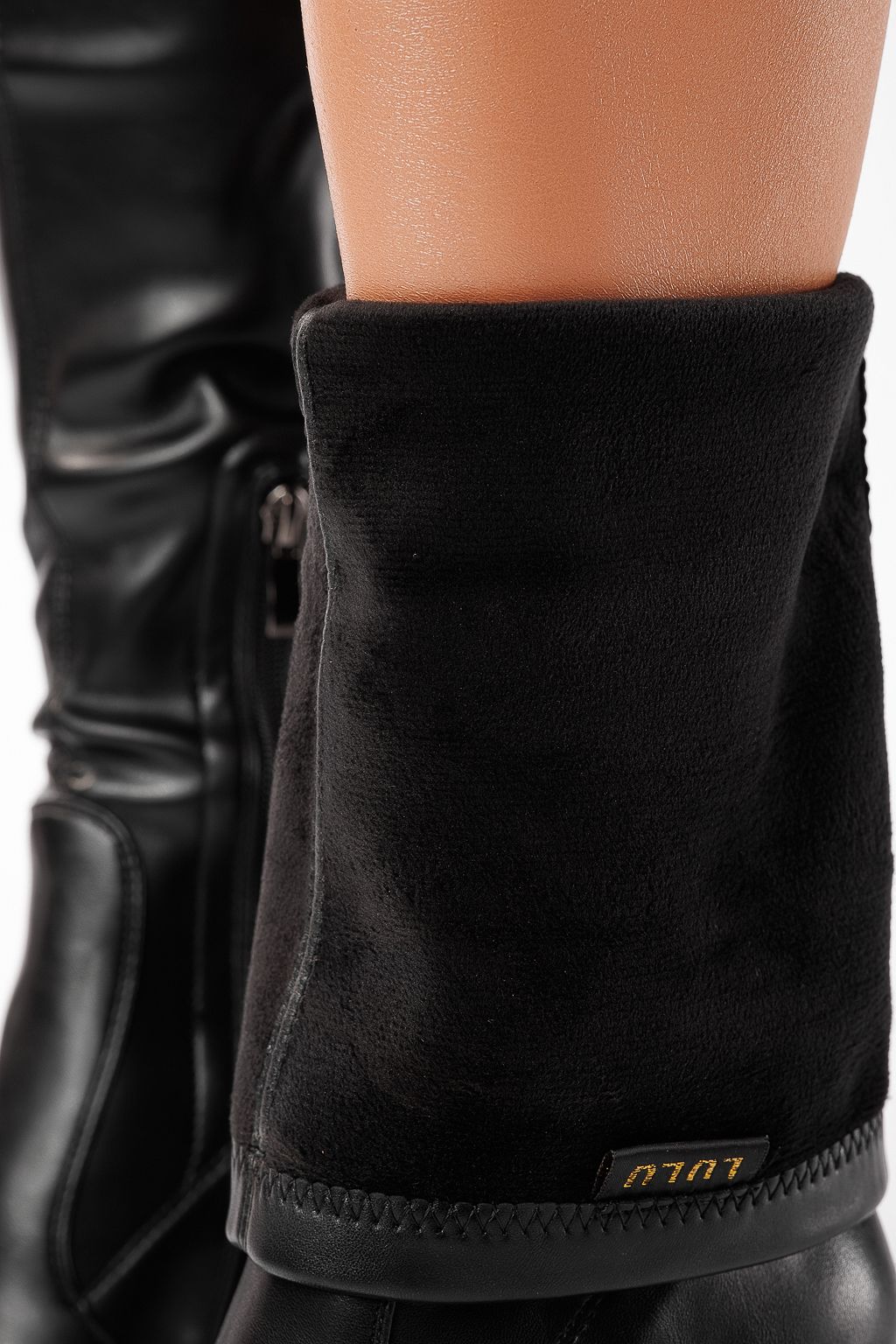 Къси дамски чизми подплатени с пух черни от еко кожа Erica #22853