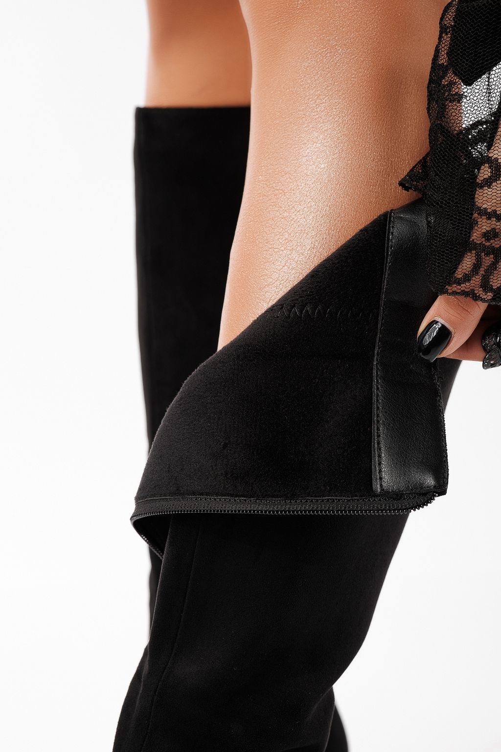 Къси дамски чизми подплатени с пух черни от обърната еко кожа Fathia #22856