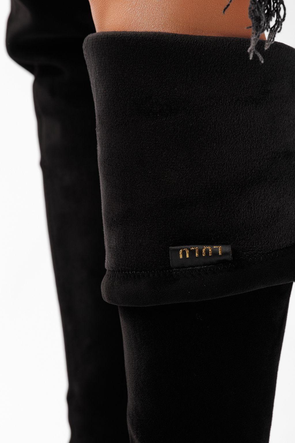 Дълги дамски чизми подплатени с пух черни от обърната еко кожа Hateya #22862