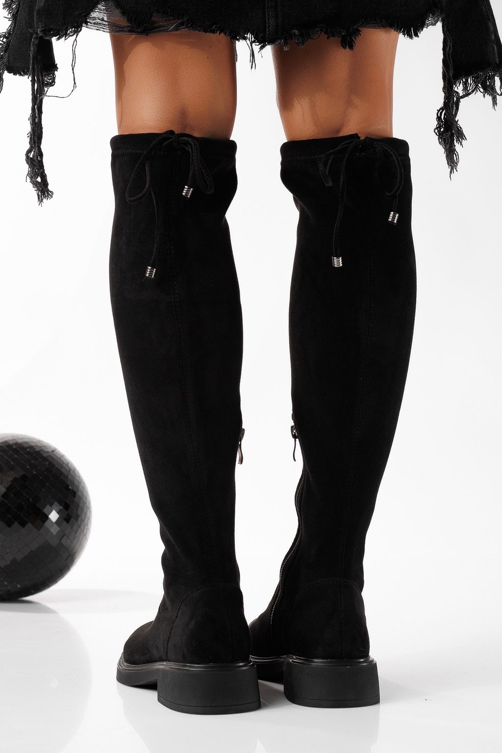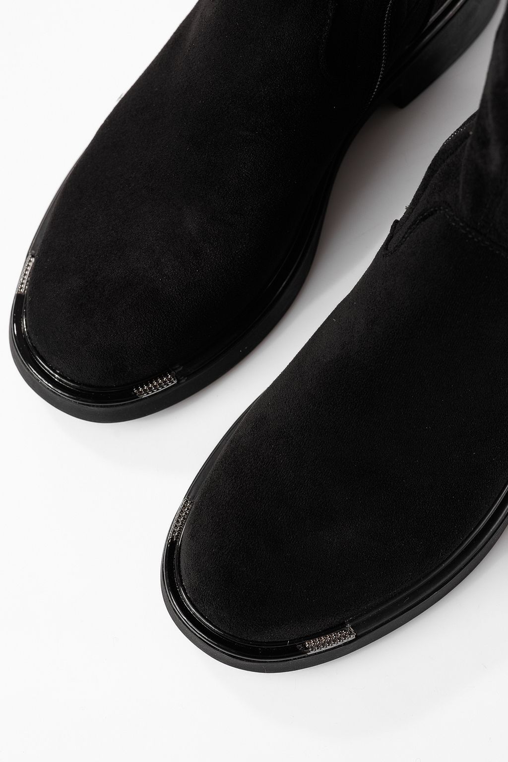 Къси дамски чизми подплатени с пух черни от обърната еко кожа Hiraani #22863
