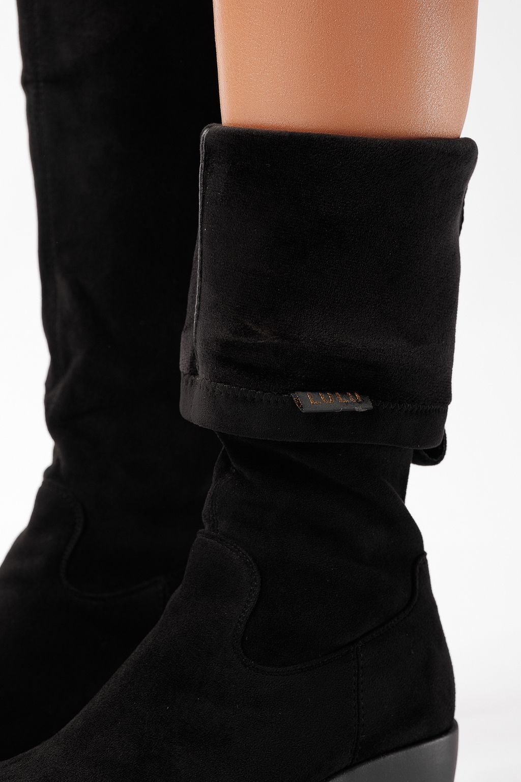 Къси дамски чизми подплатени с пух черни от обърната еко кожа Jennifer #22867