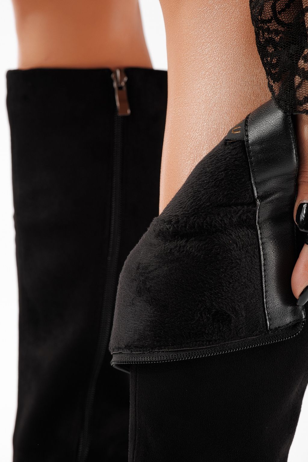 Къси дамски чизми подплатени с пух черни от обърната еко кожа Maddy #22874