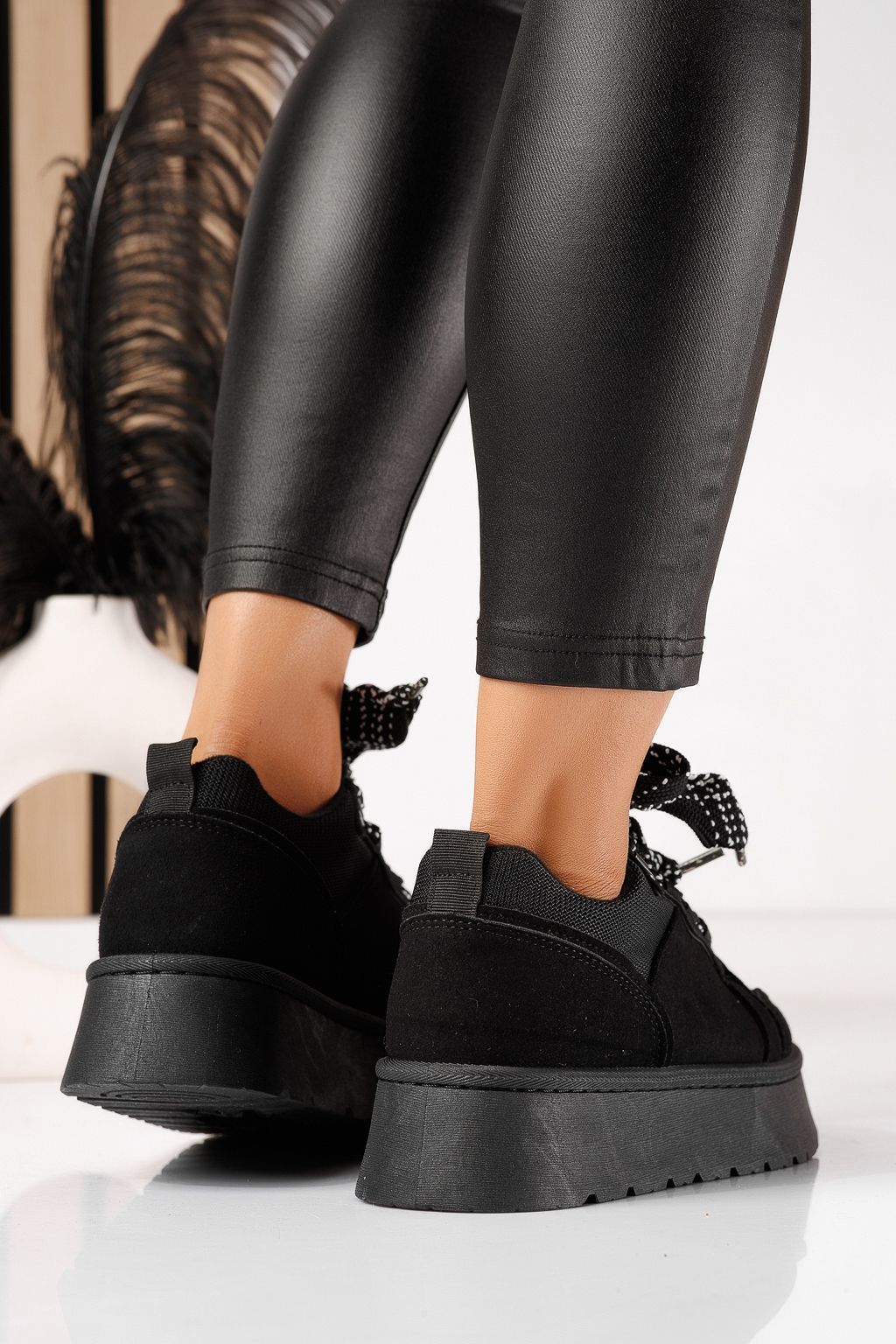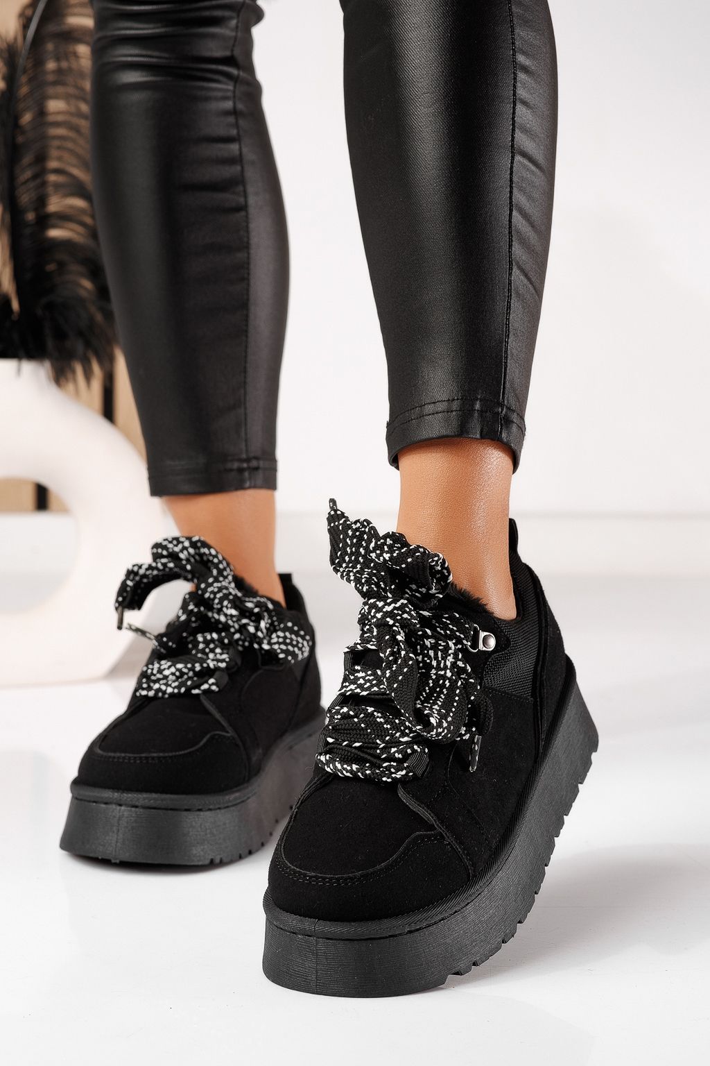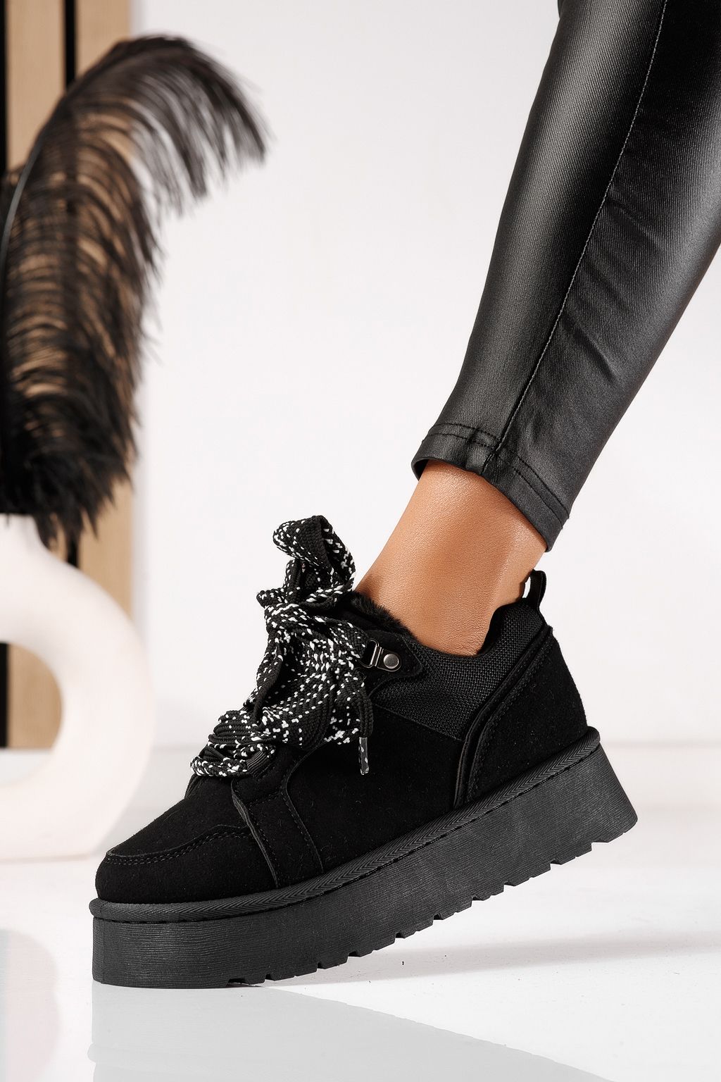 Дамски маратонки подплатени черни от обърната еко кожа Elvira #22909