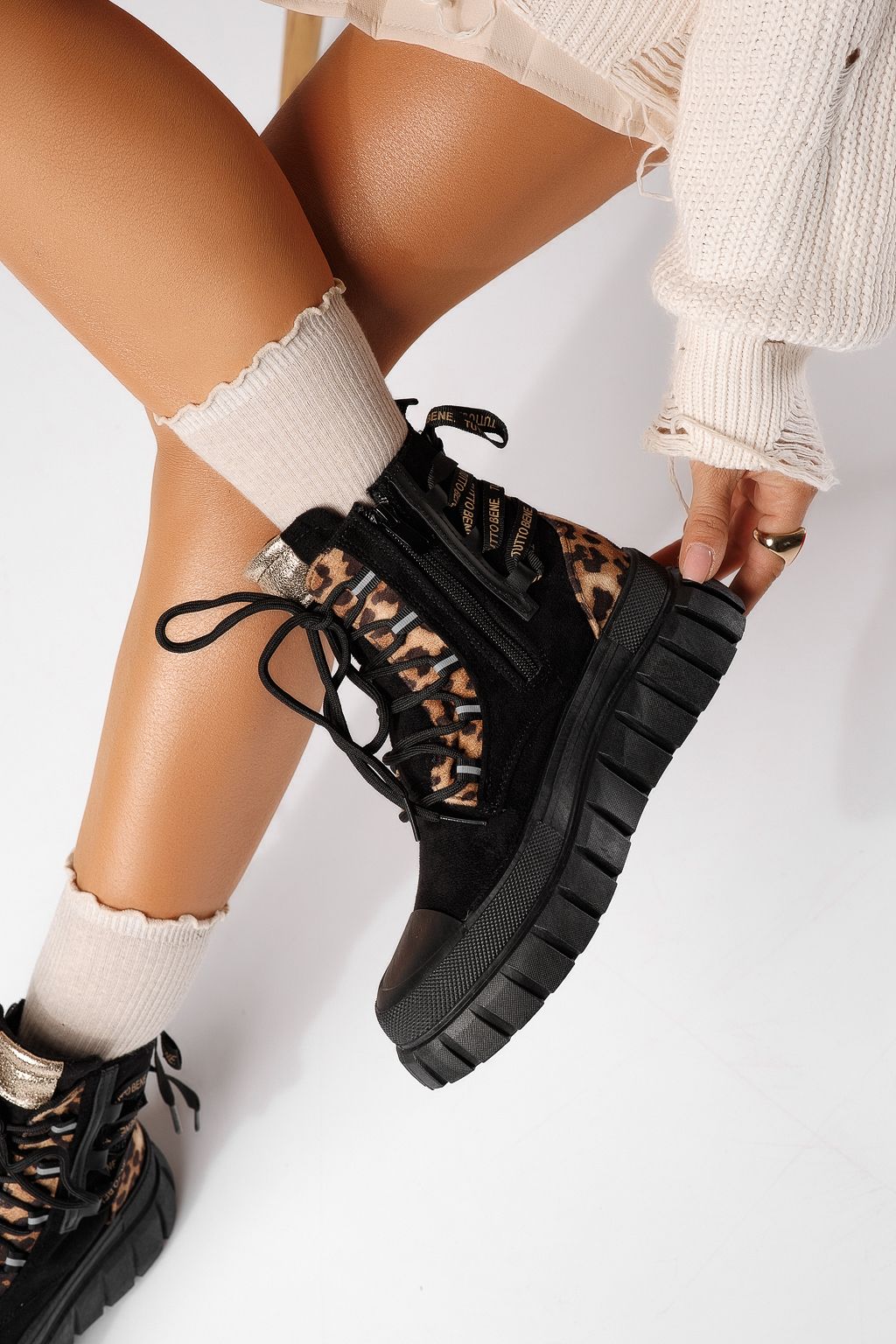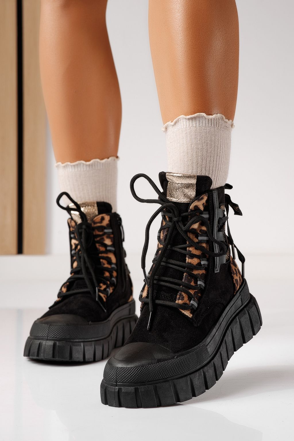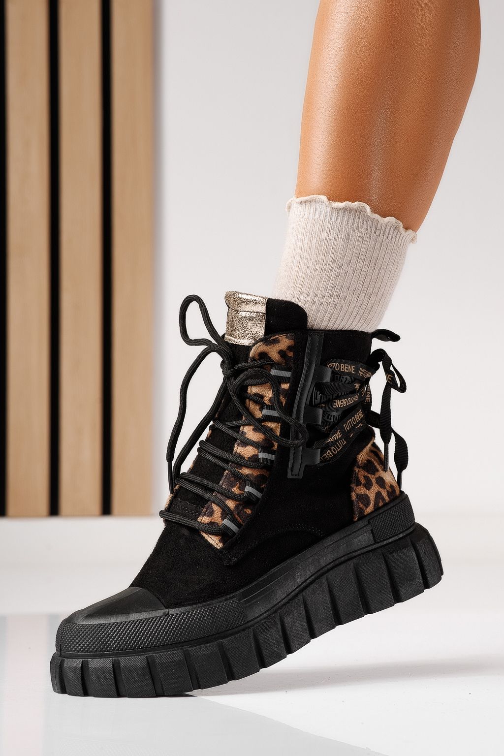 Дамски боти подплатени черни от обърната еко кожа Gloria #22919