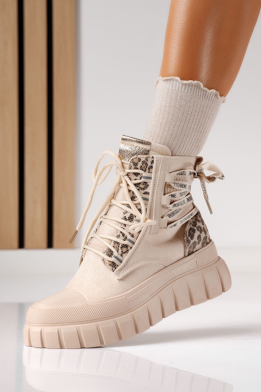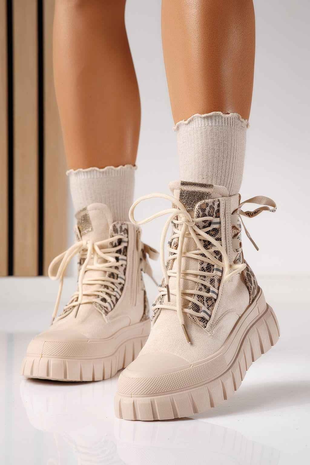 Дамски боти подплатени бежови от обърната еко кожа Gloria #22921