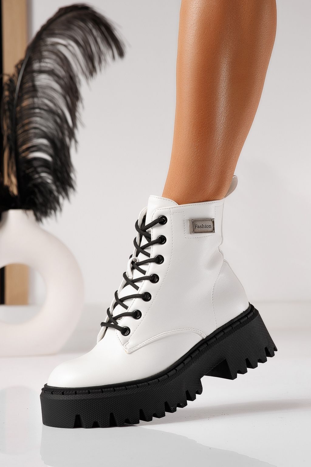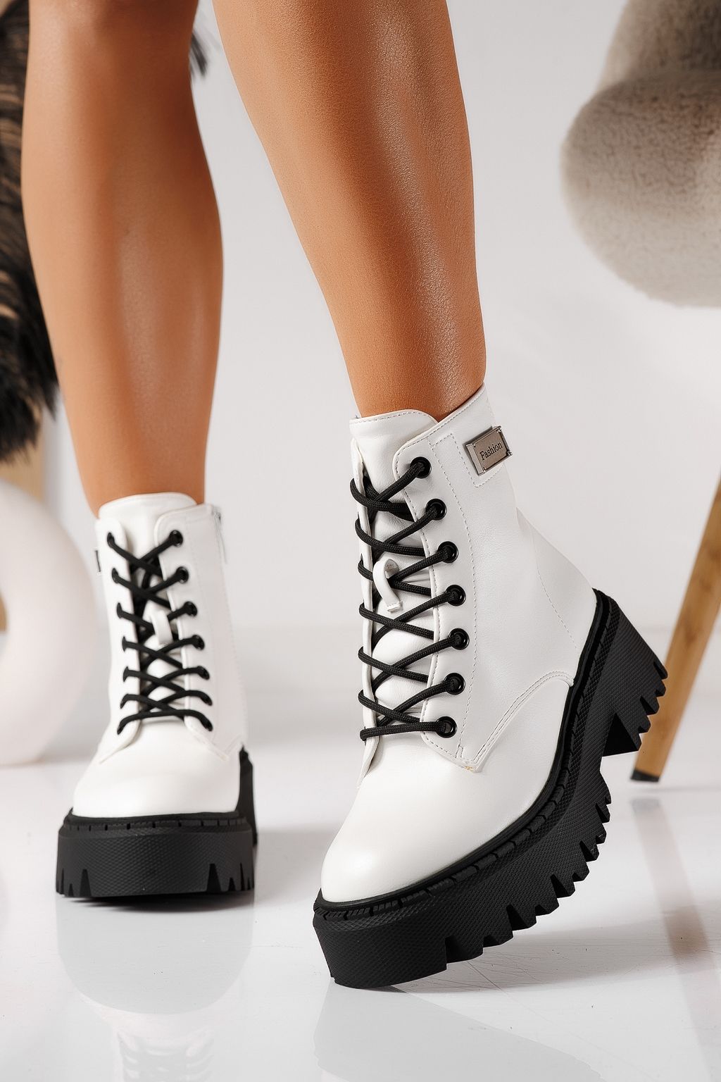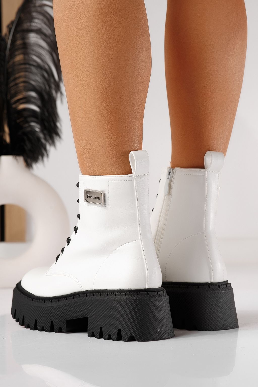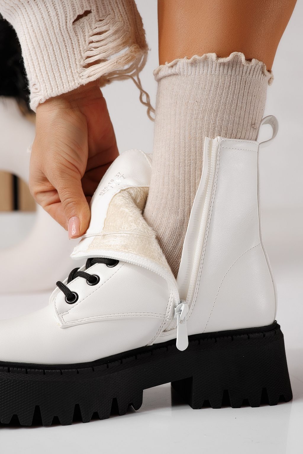 Дамски боти ватирани бели от еко кожа Kara #22927